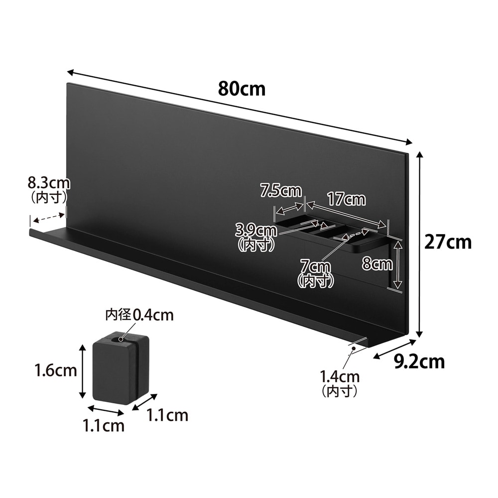 ●幅約80、奥行約9.2、高さ約27cm、リモコンホルダー:幅約17、奥行約7.5、高さ約8cm、ケーブルホルダー:幅約1.1、奥行約1.1、高さ約1.6cm(1つあたり)