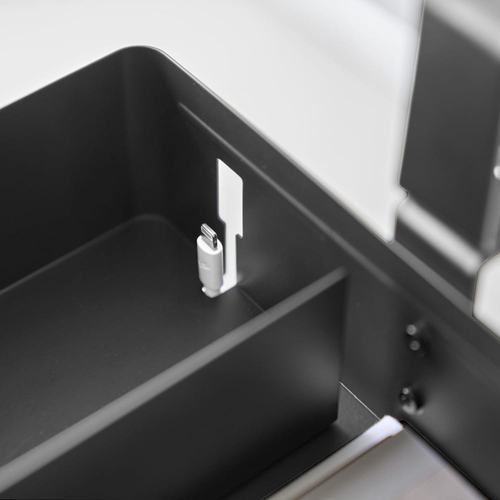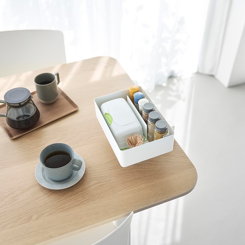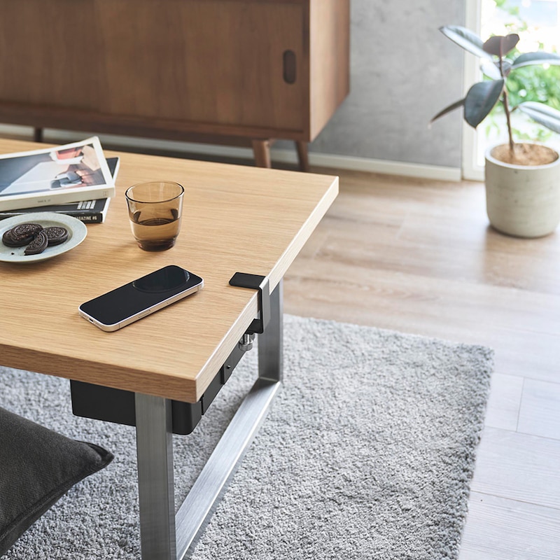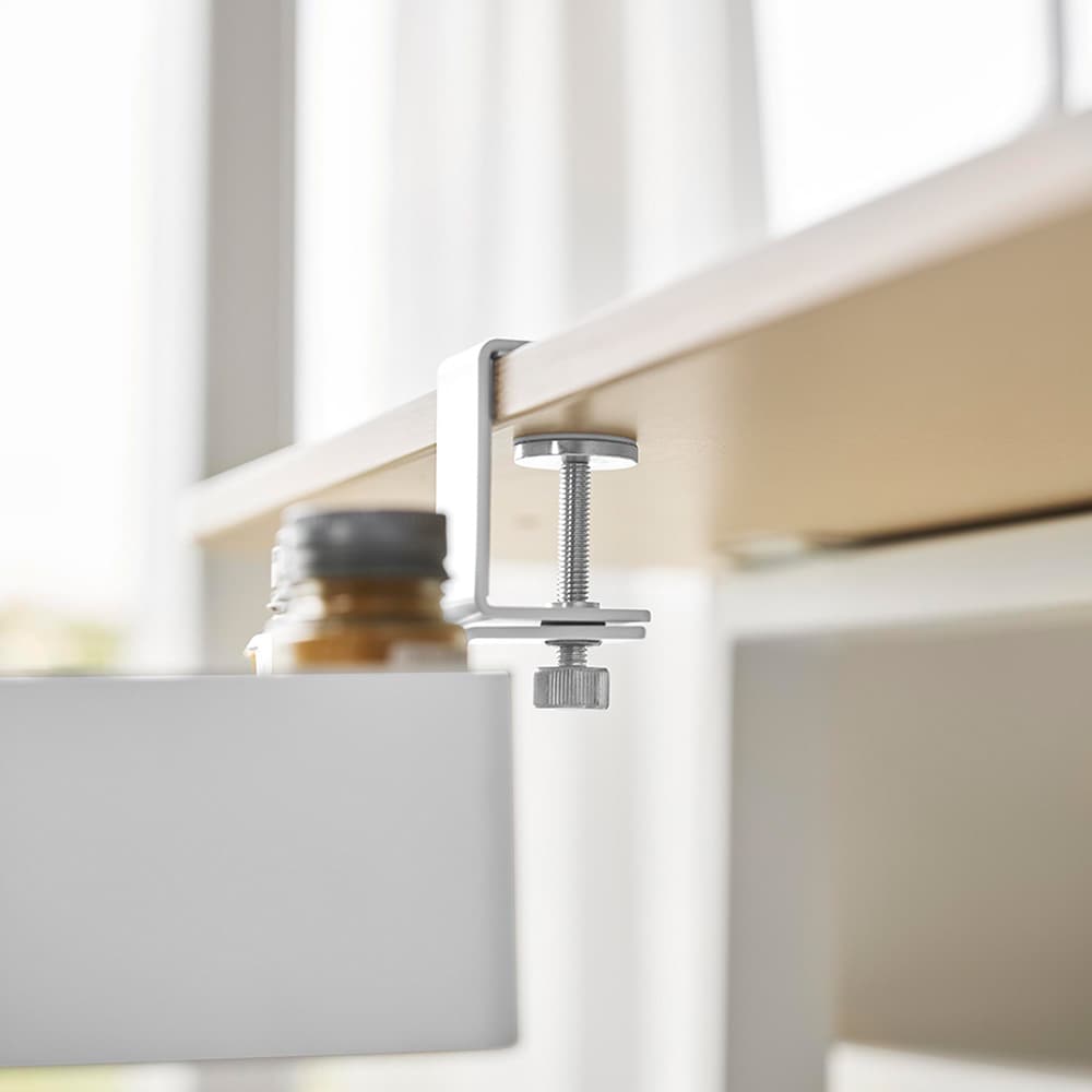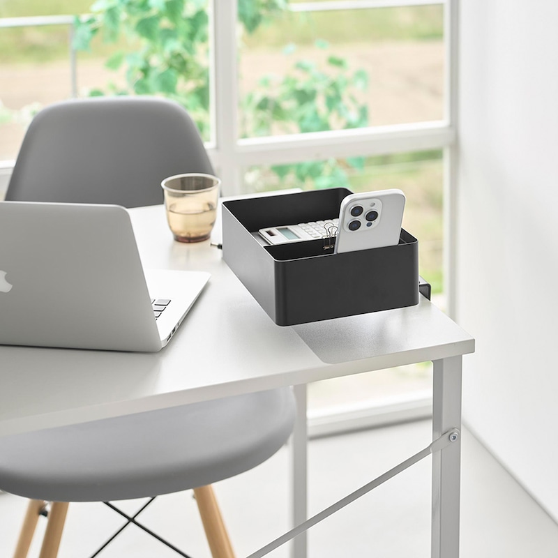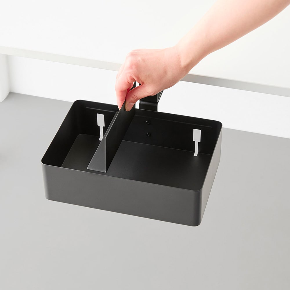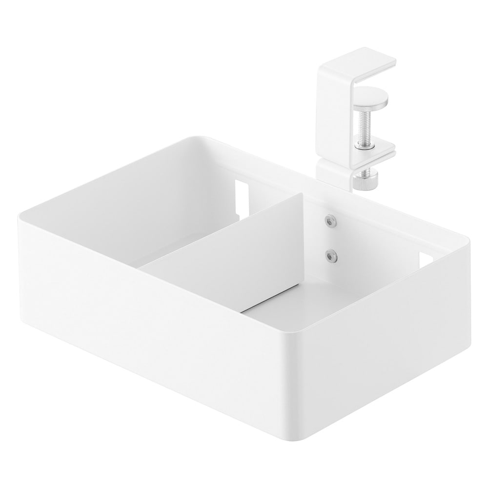 パソコン台のテーブルサイドに設置してみました。いろんな向きに取り付け可能なので、便利なアイテムだと思いました。しっかりと取り付けられて、仕切り付きでスッキリ収納できて使いやすいです。