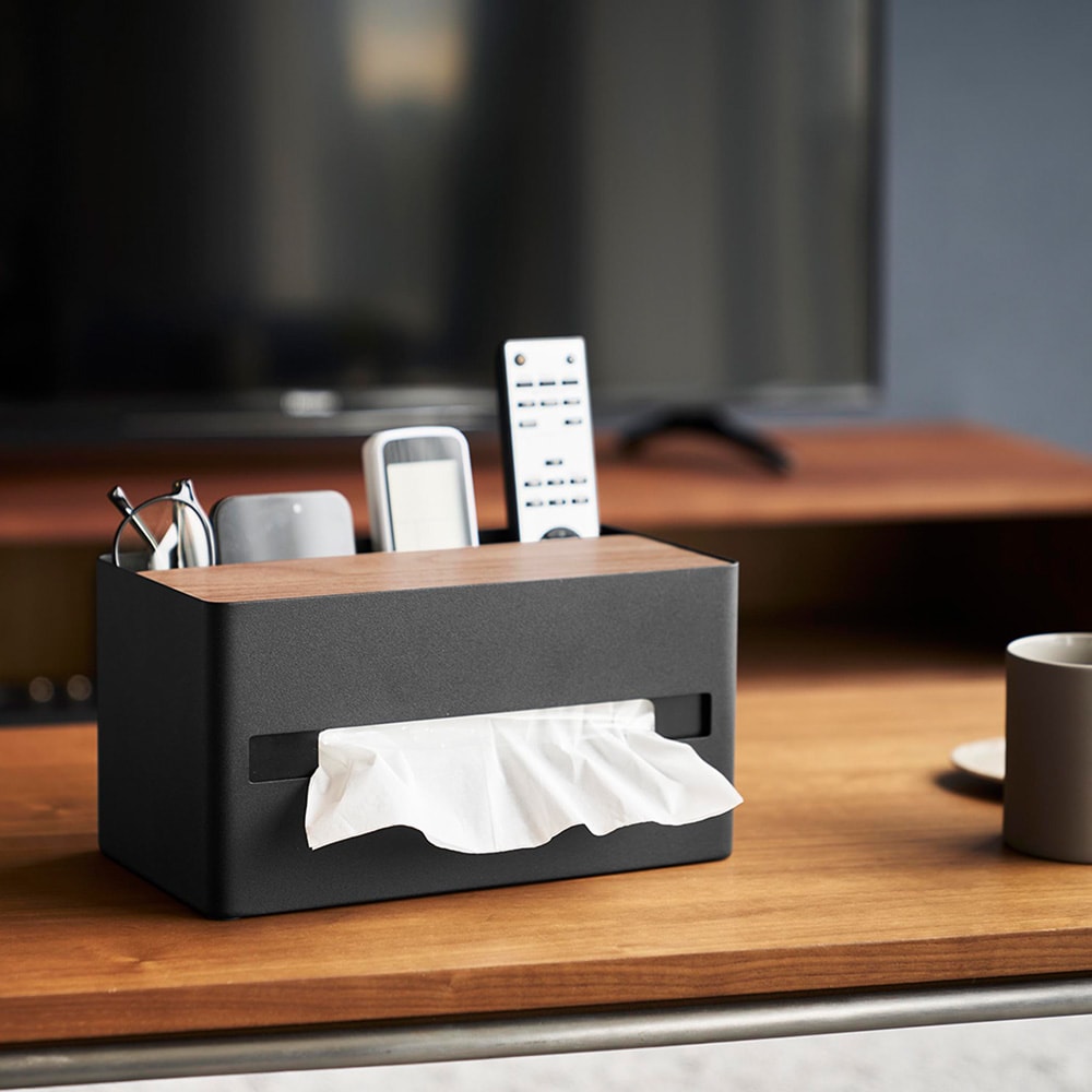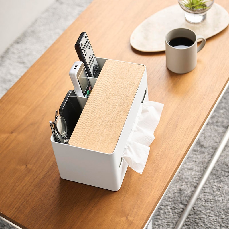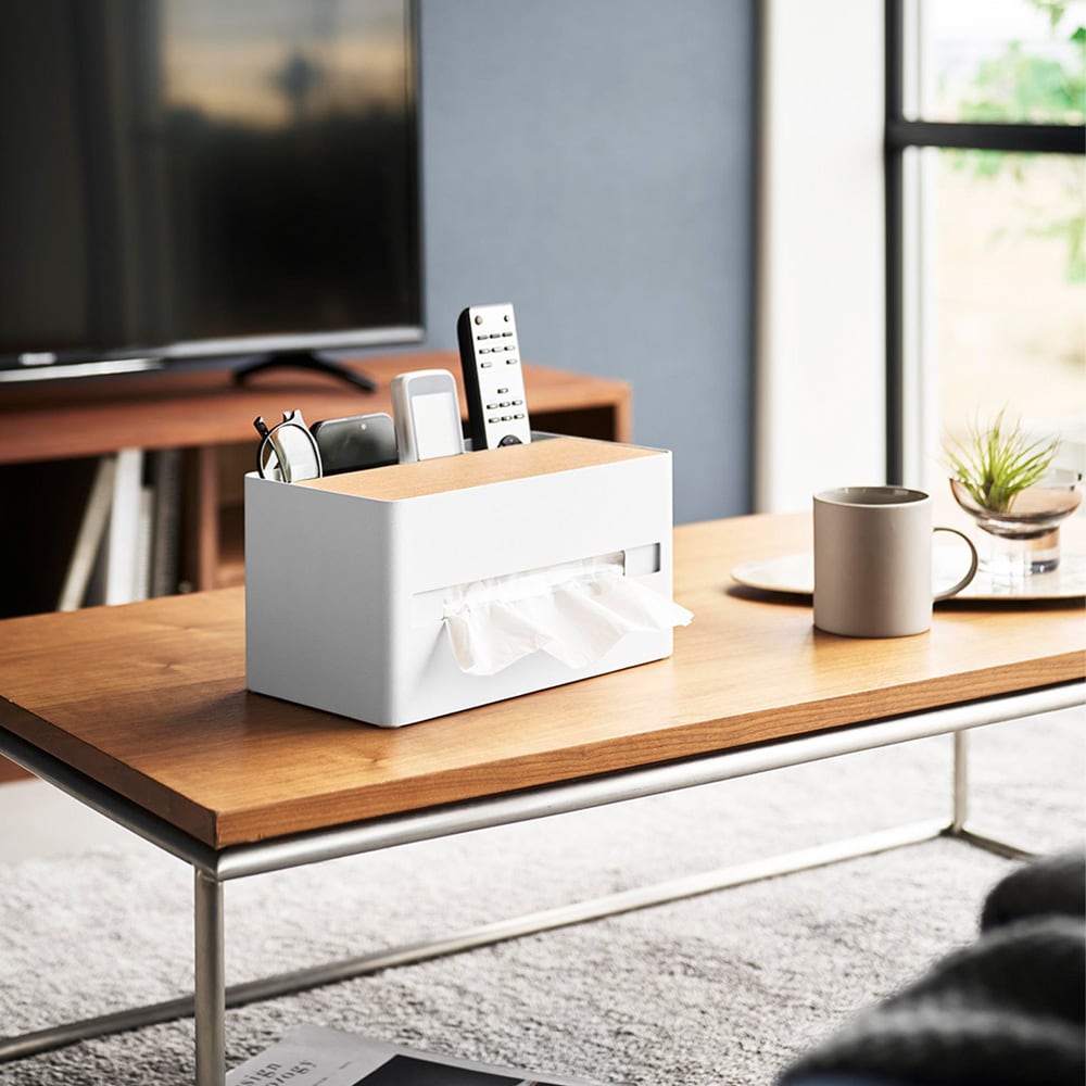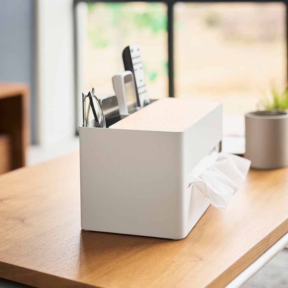 ●リモコンや文房具、メイクブラシやコスメなど、散らかりがちな小物をティッシュと一緒にまとめて収納できます。
