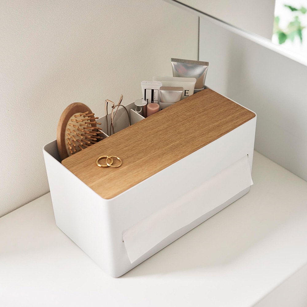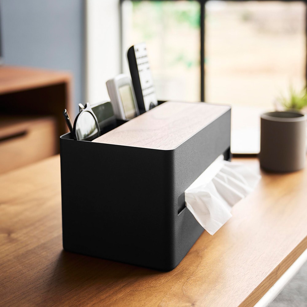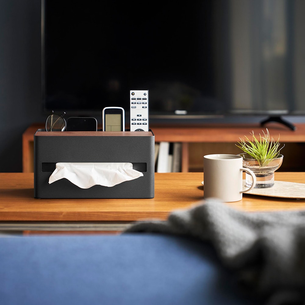 ●リモコンや文房具、メイクブラシやコスメなど、散らかりがちな小物をティッシュと一緒にまとめて収納できます。
