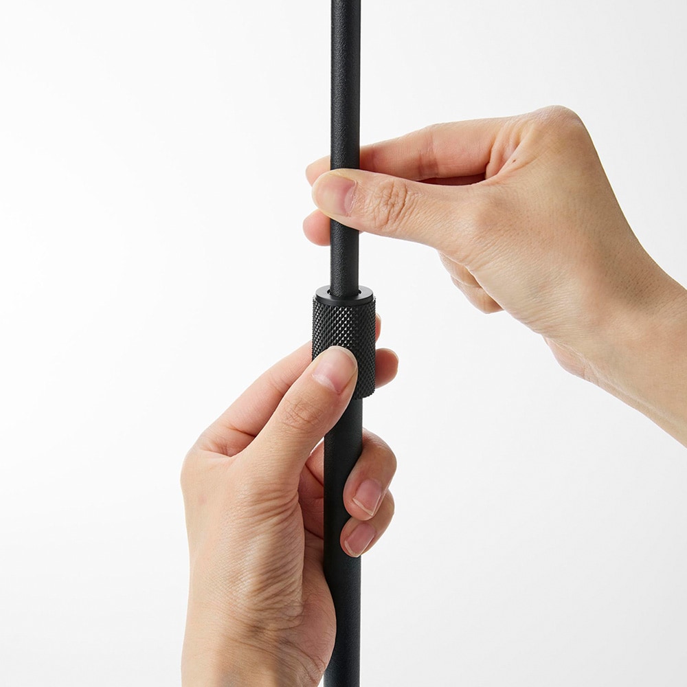 • 土台と支柱の固定位置を変え90度回すことで狭い場所でもスリムに使うことができます