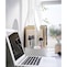 土台と支柱の固定位置を変え90度回すことで狭い場所でもスリムに使うことができます