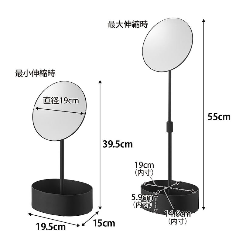 ●幅約19.5、奥行約15、高さ約39.5~55cm、ミラー:直径約19cm