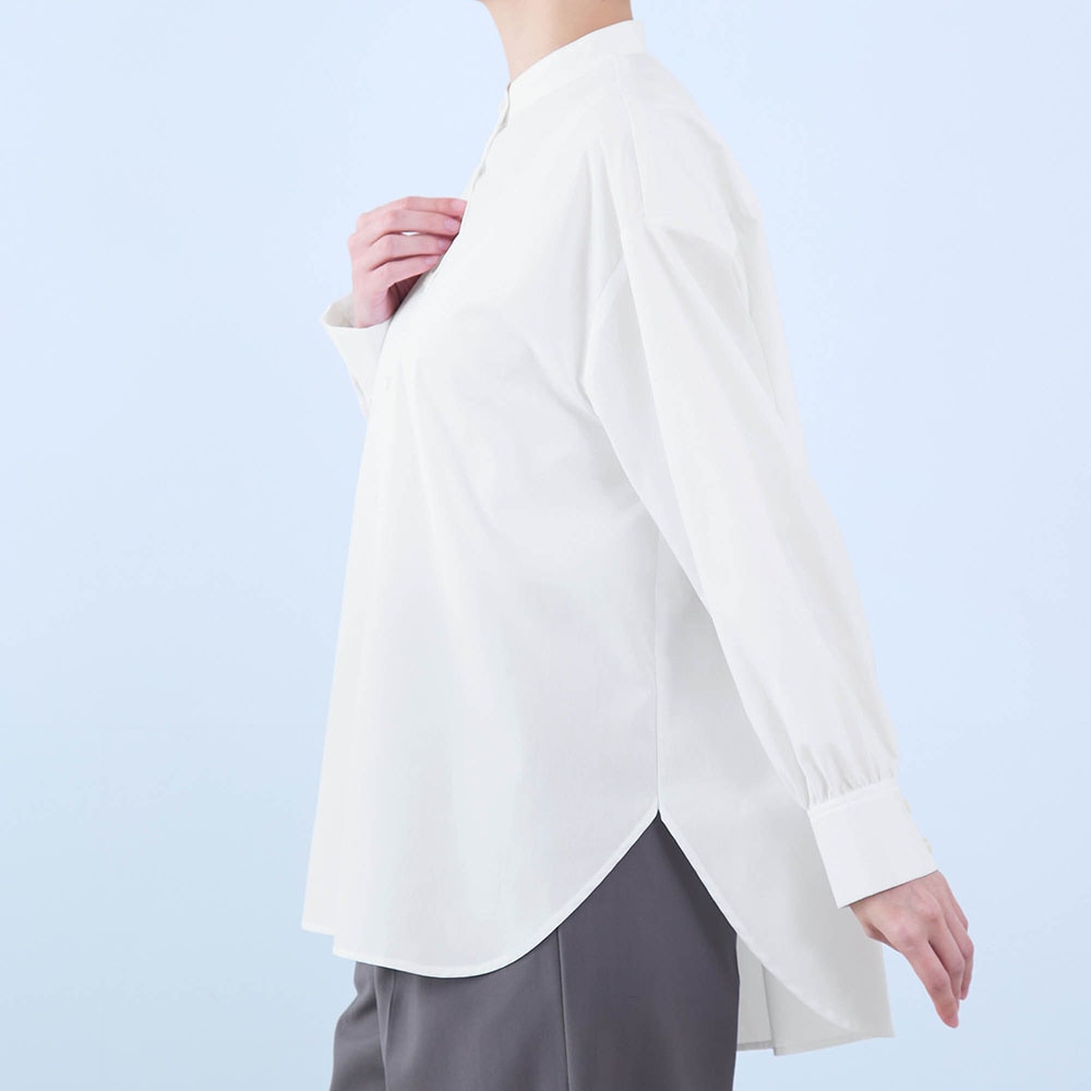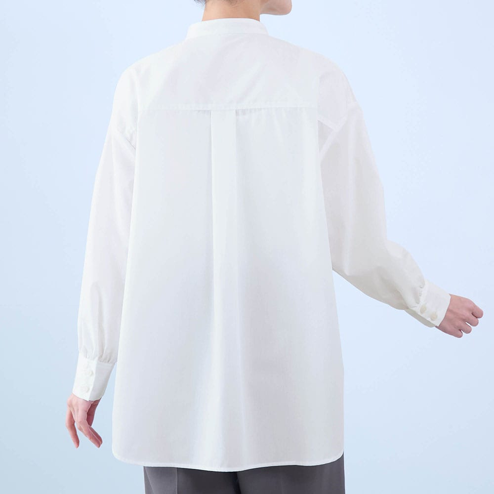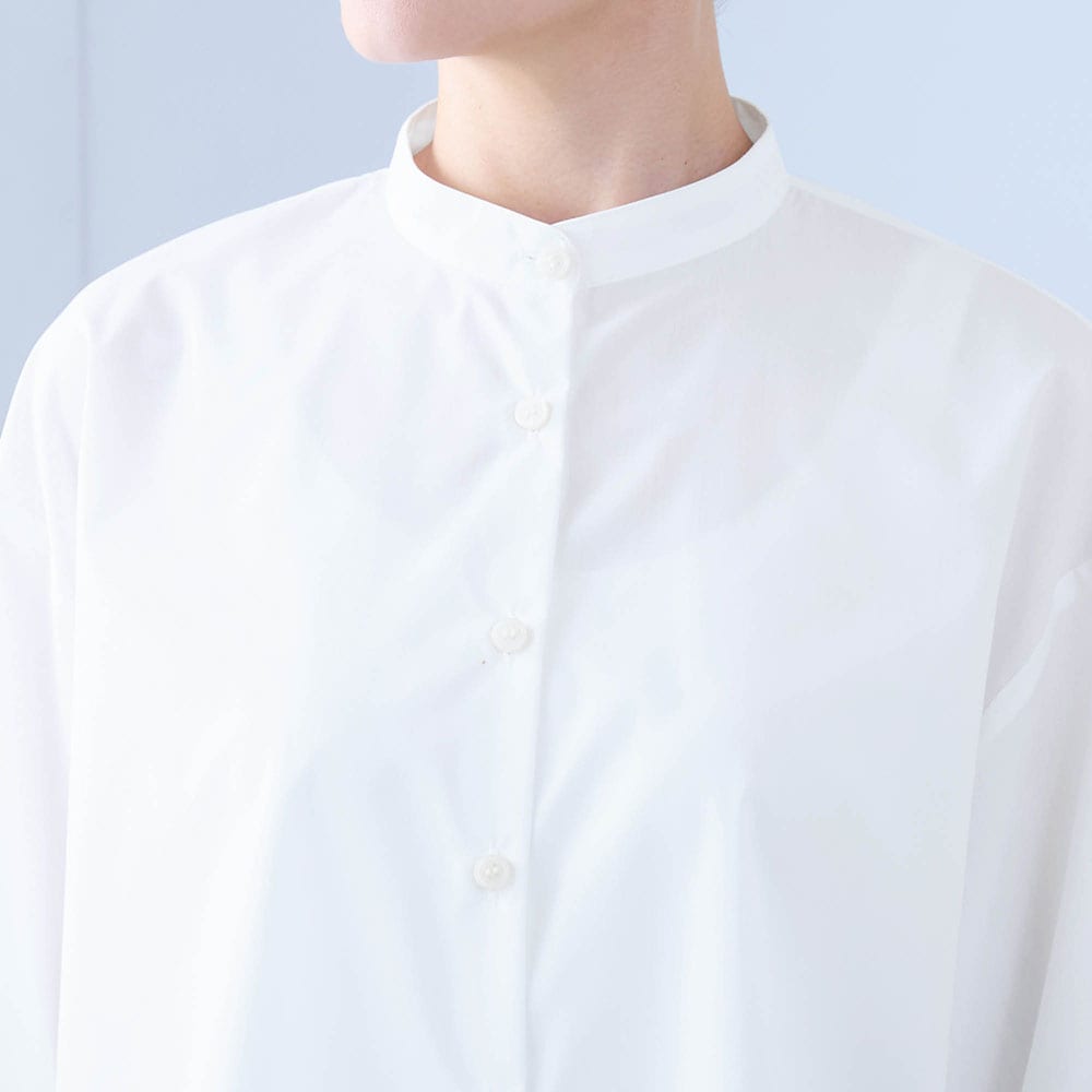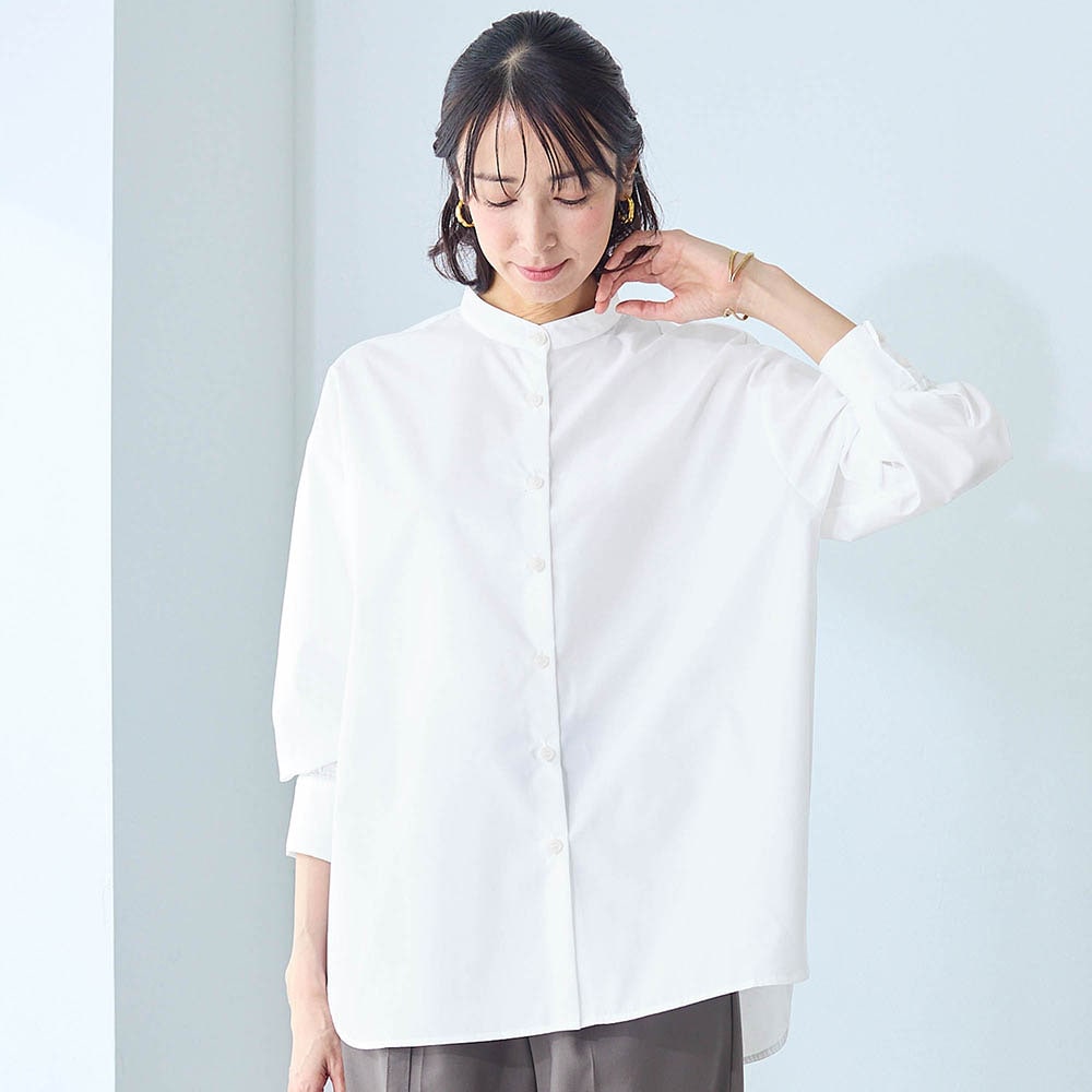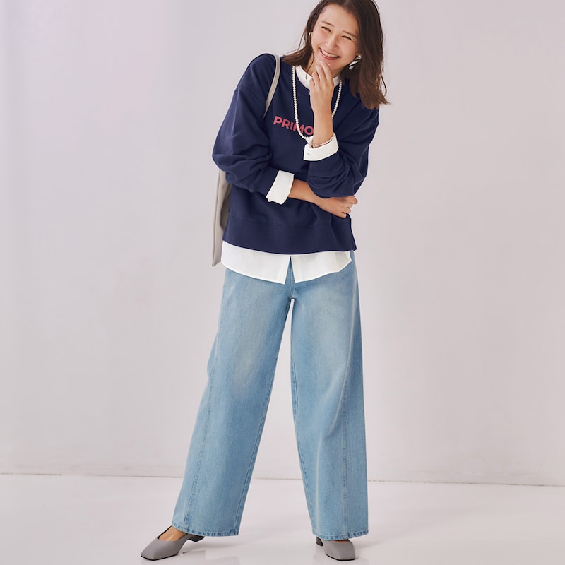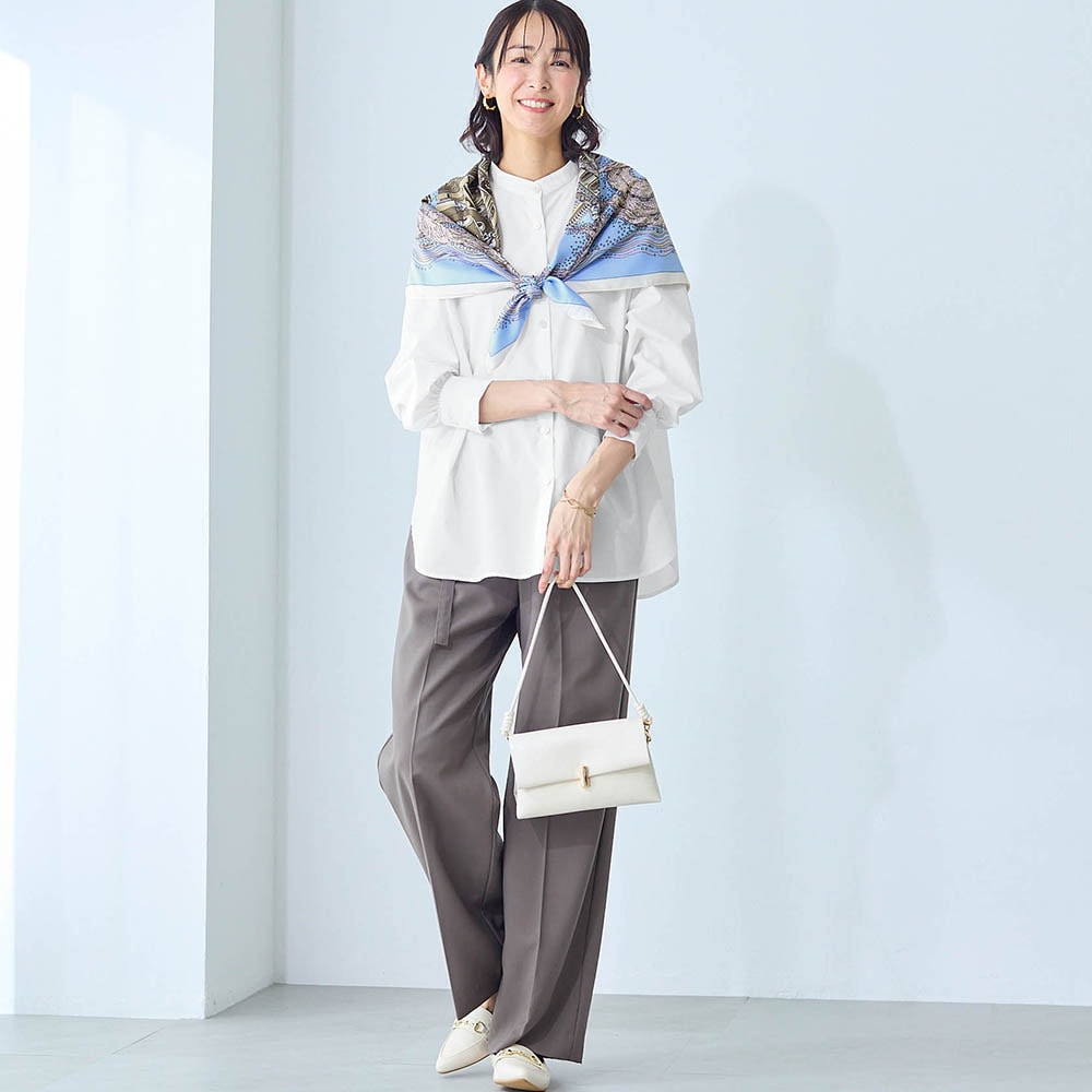 合わせやすい安定の白シャツにさりげなくブルーをプラス