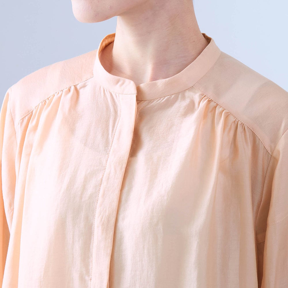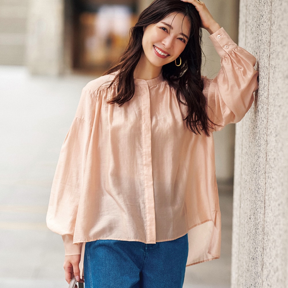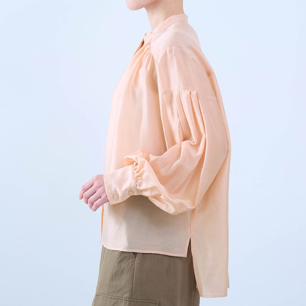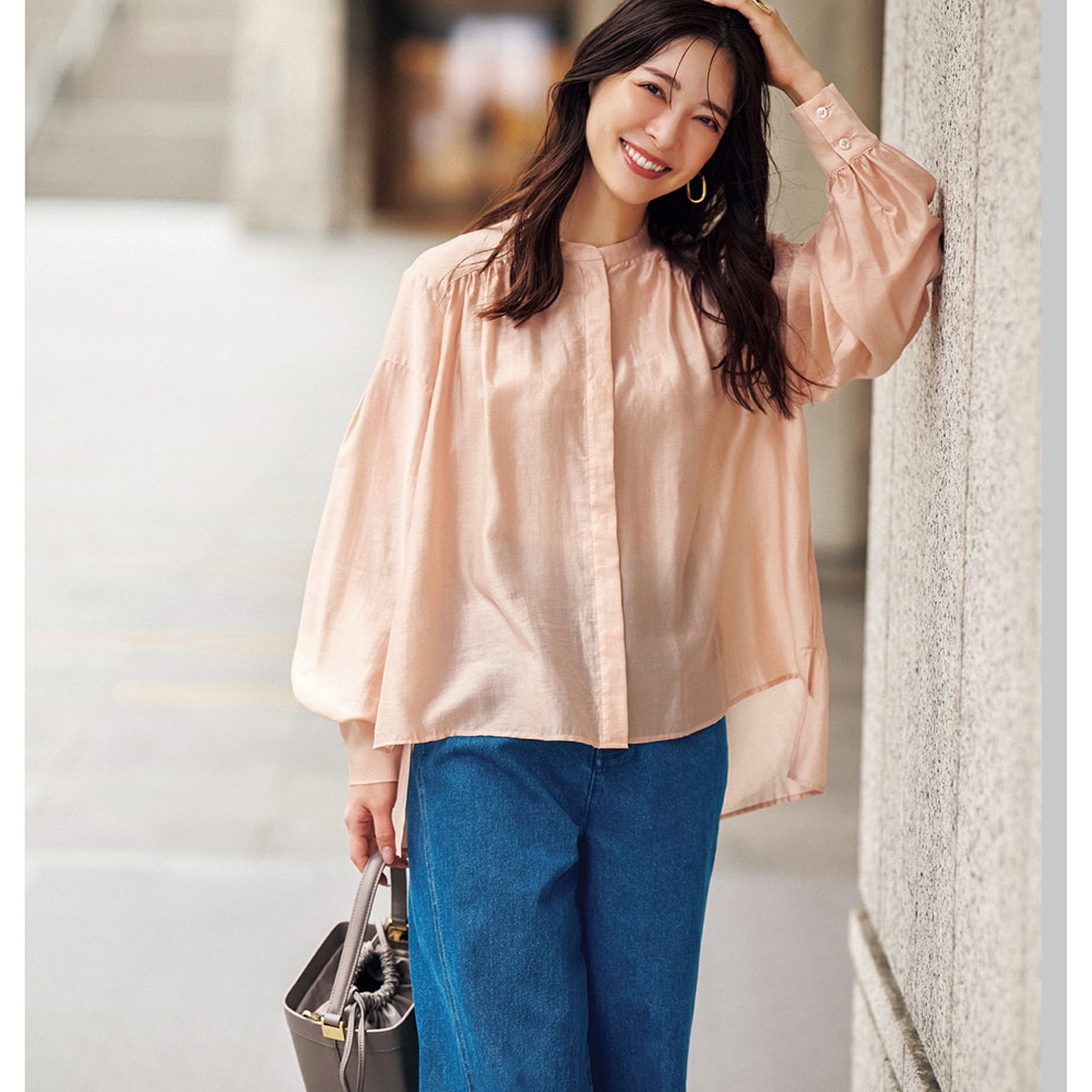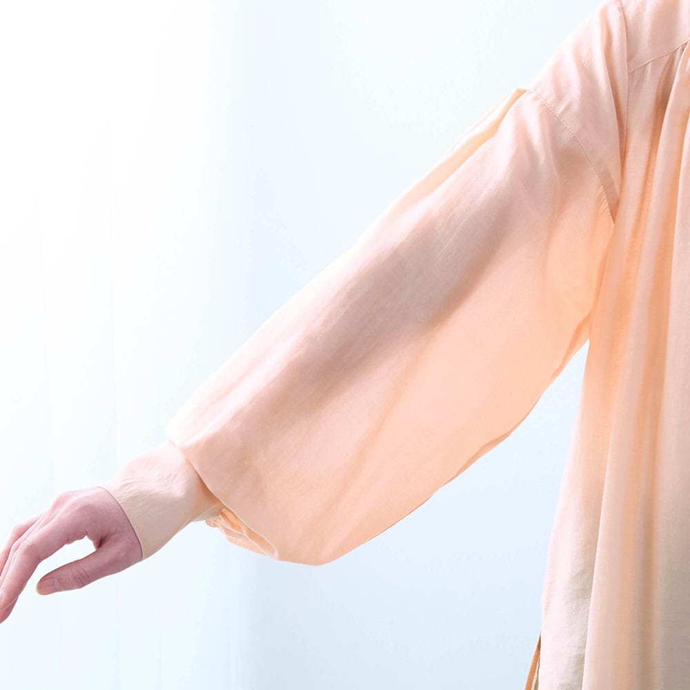 シアーピンクはややオレンジ気味の可愛い色でふんわりした袖もとても気に入りました。ツヤもあり透け感もあるのでインに着る物に気を使いますがこの夏いっぱい着ます。