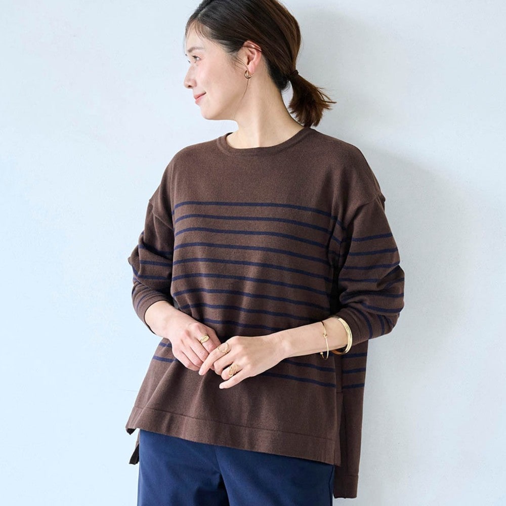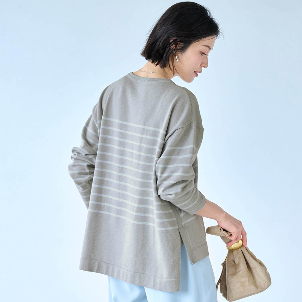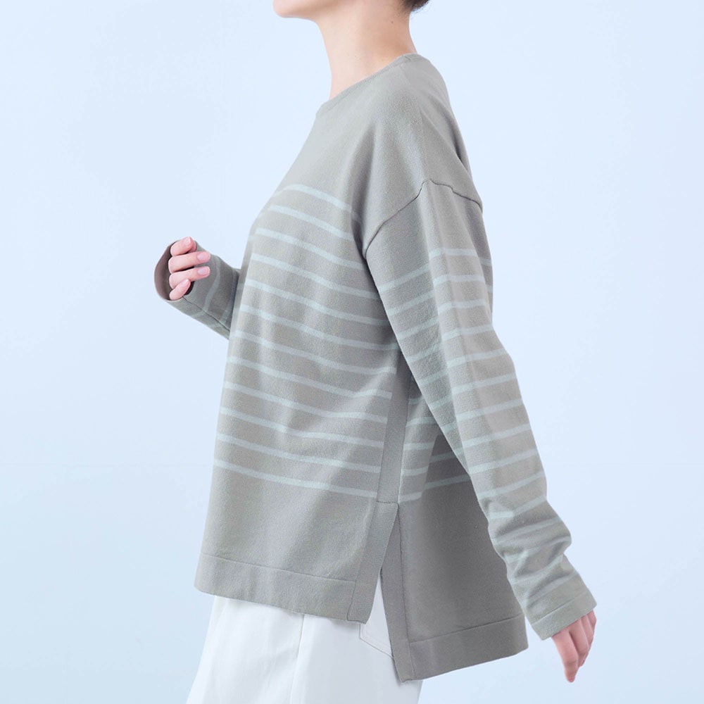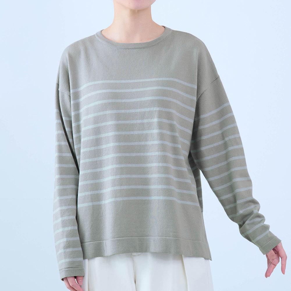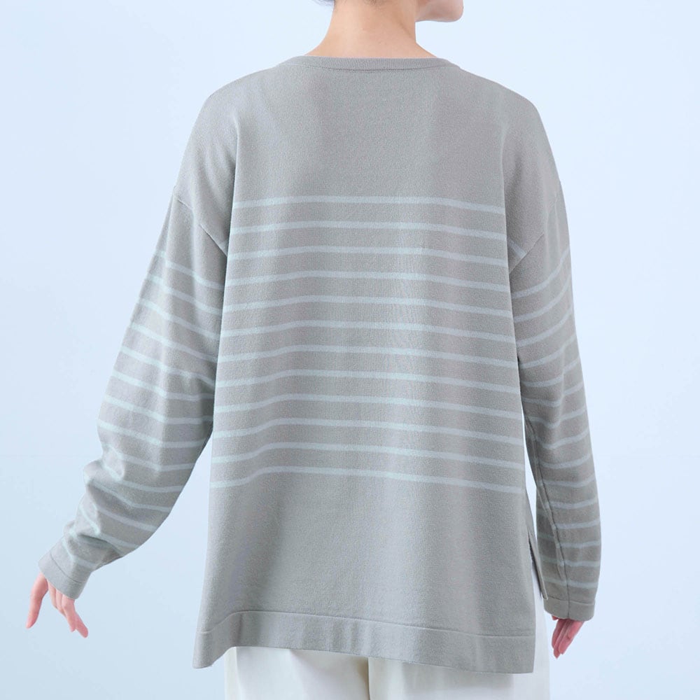 身長163.6センチ、普通体型です。腕も長い方で普段は11号サイズですが、Lは大きくMサイズに交換しました。