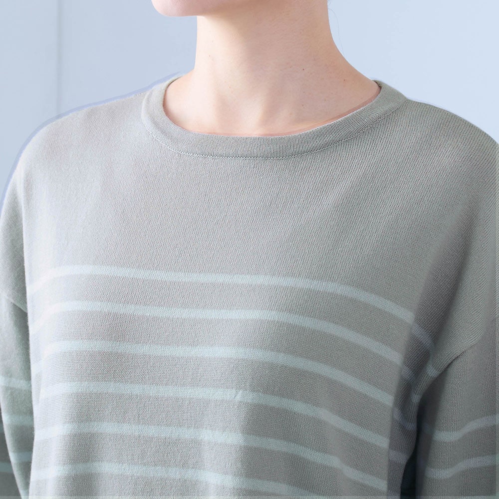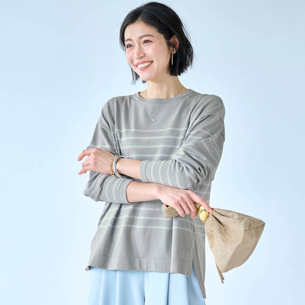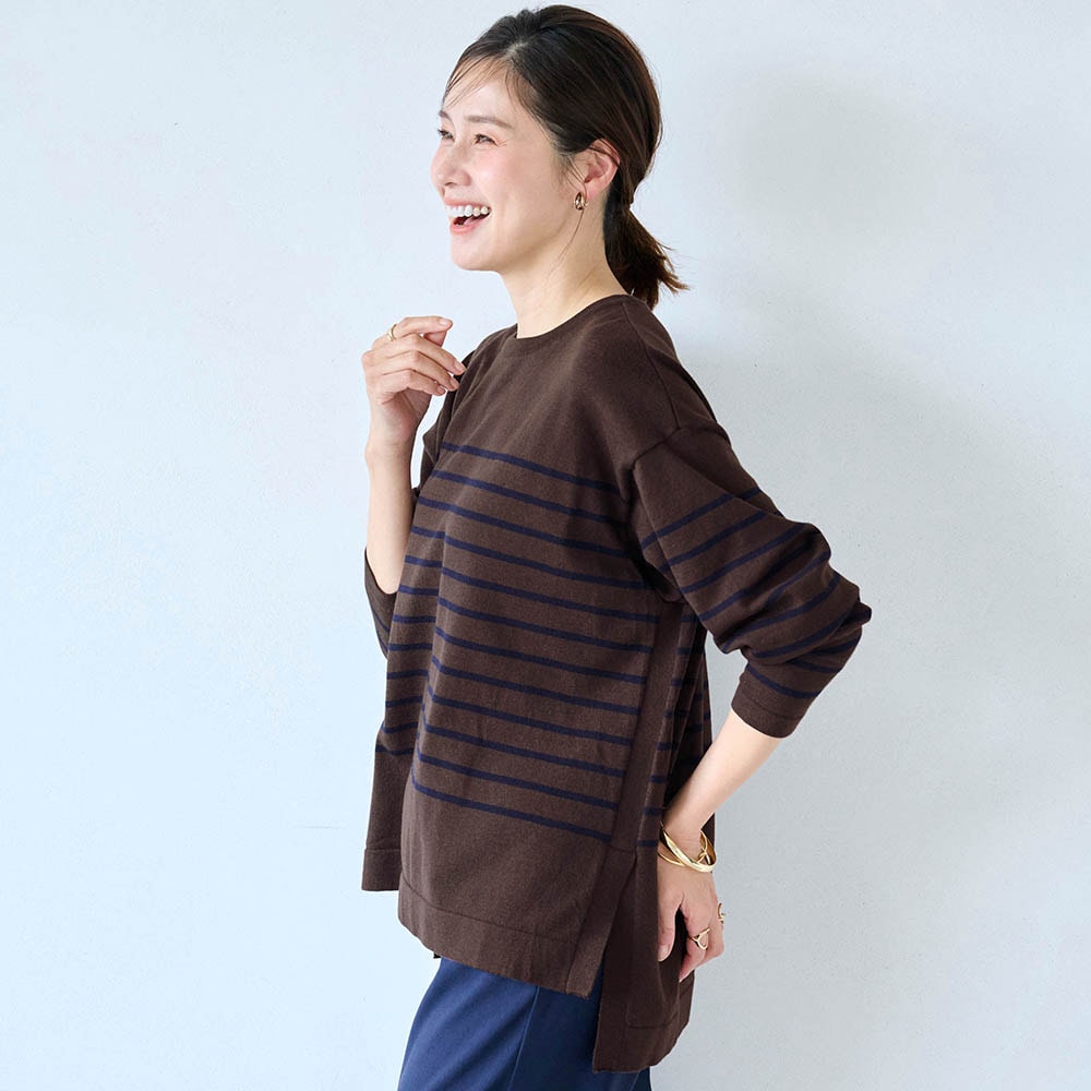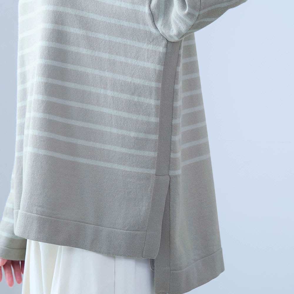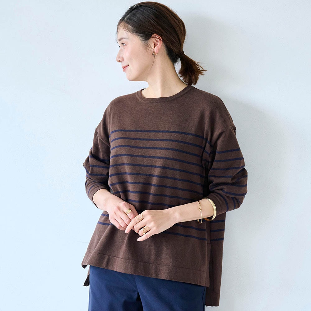 身長163.6センチ、普通体型です。腕も長い方で普段は11号サイズですが、Lは大きくMサイズに交換しました。