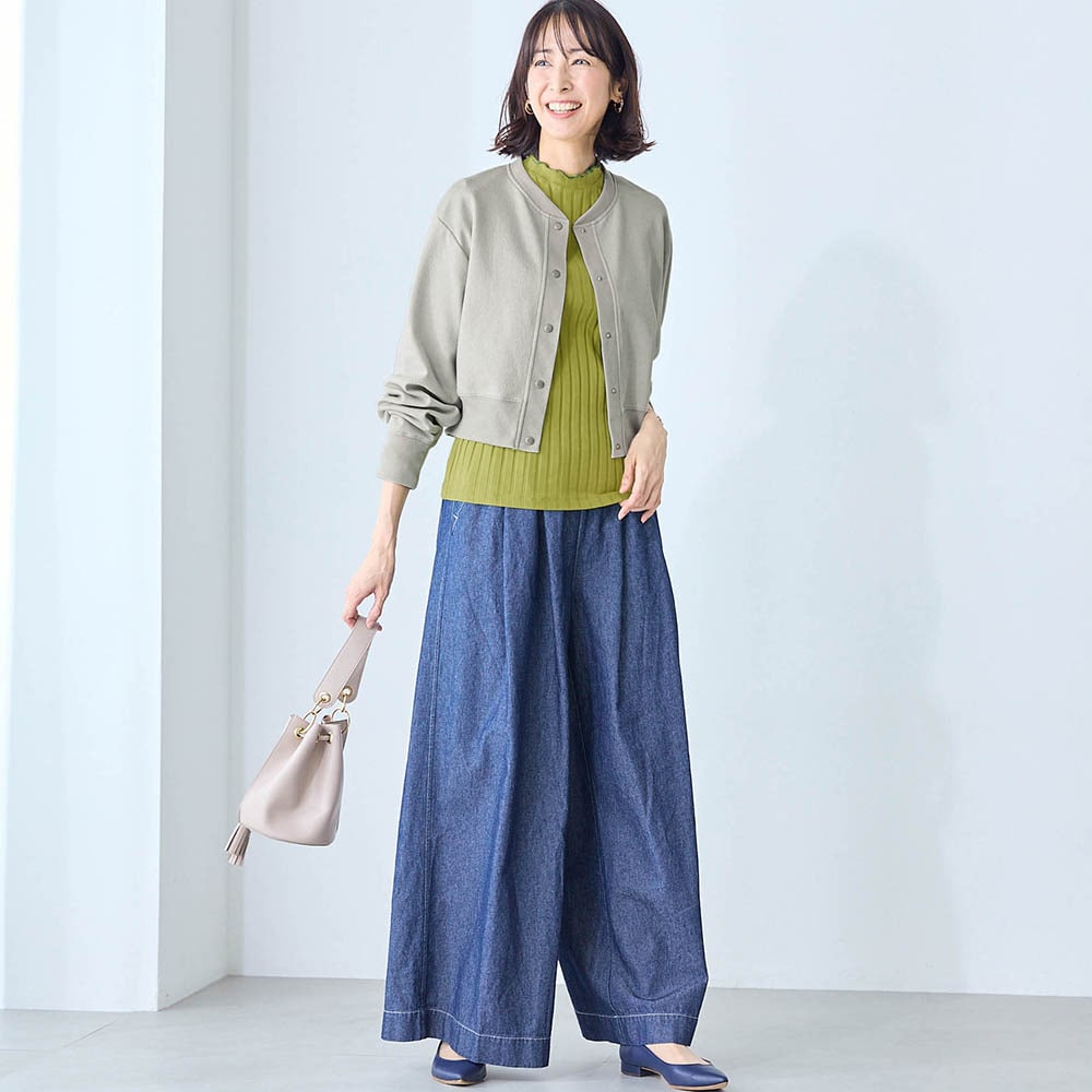 ボタンもアクセントになっているので、セットアップで着なくても決まります。