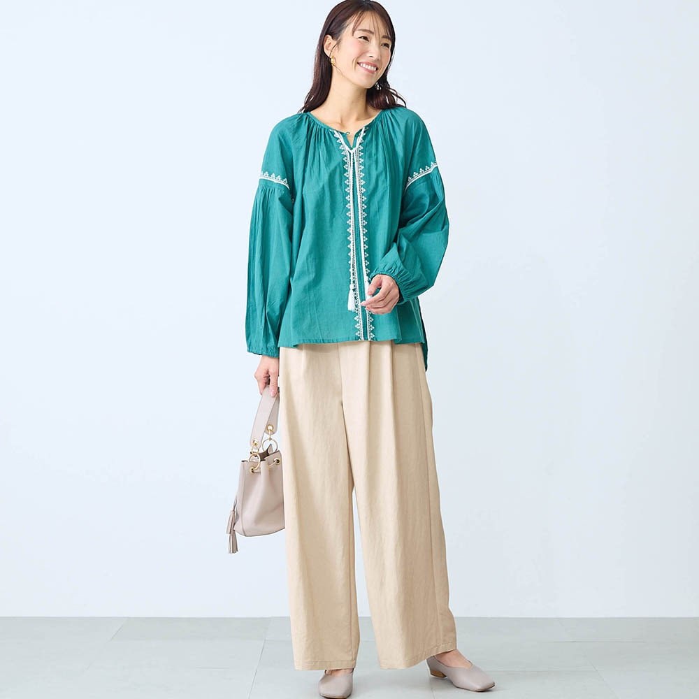 ・トレンドのワイドシルエットパンツに、