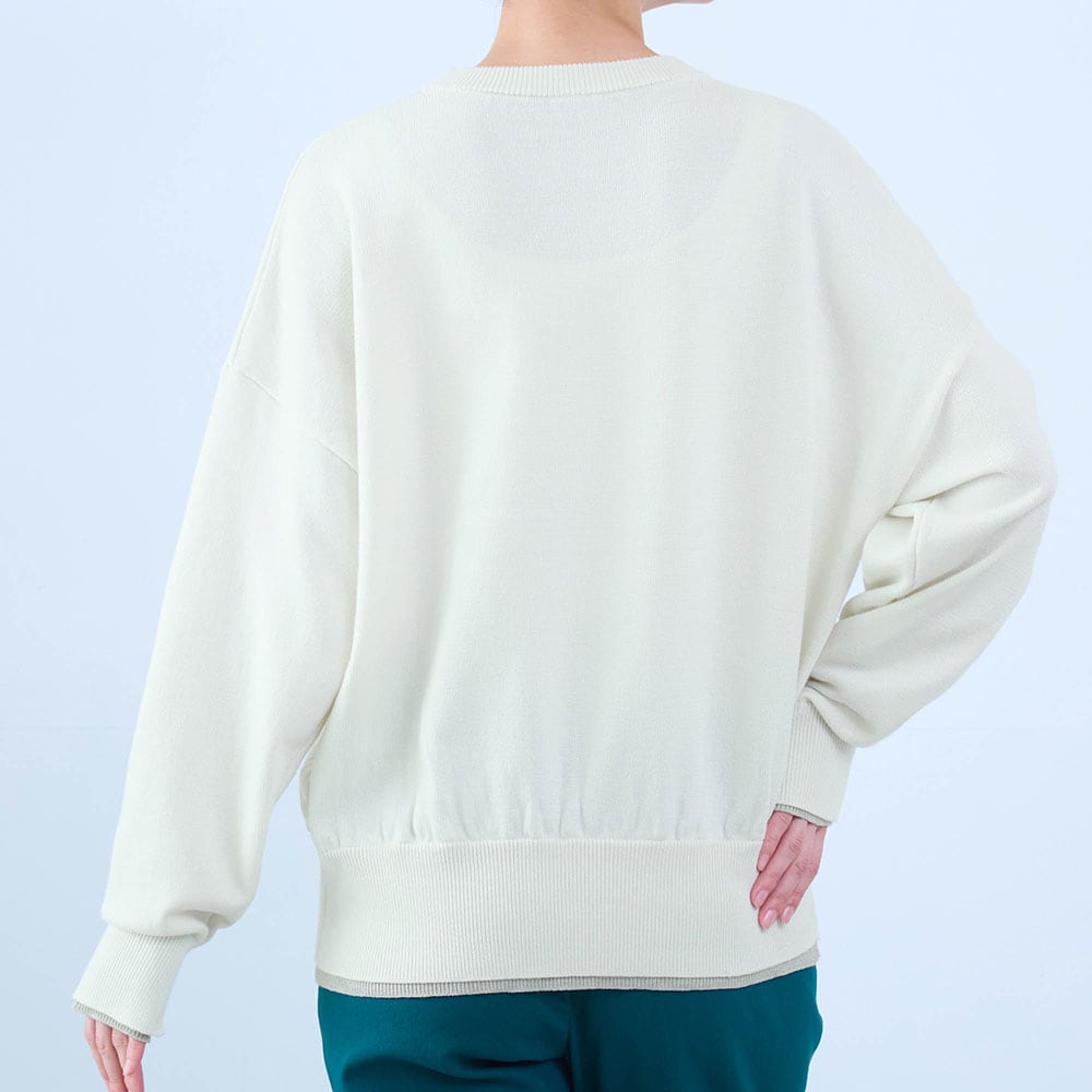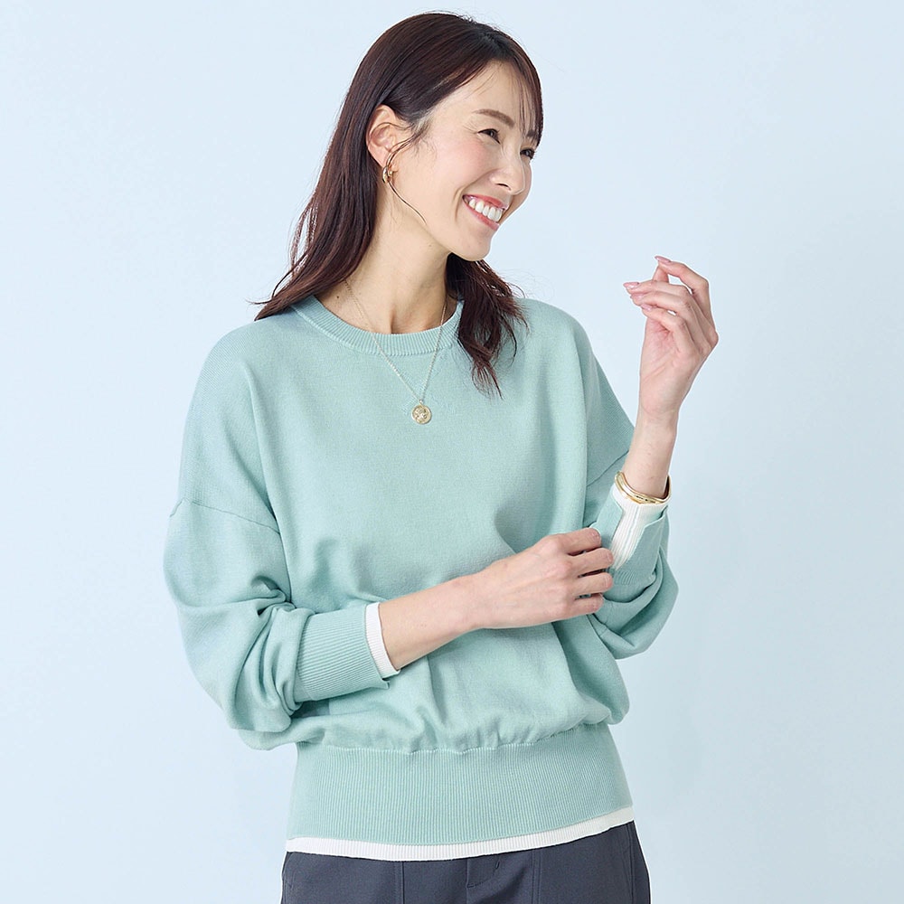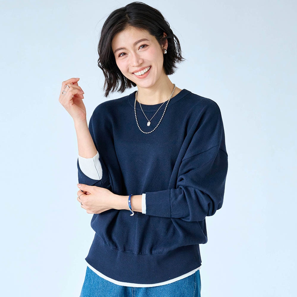 手触りが好きでは無かったので返品しました。 重ね着風でチラッ見える色も主張し過ぎていないので合わせやすいのでは?と思いました。年齢も問わないと思います。