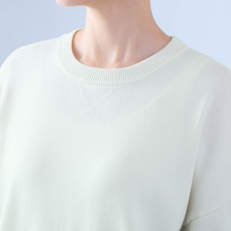 デザイン:前の首元あたりに×(バツ)っぽいデザインがあり、丸首で多少狭い感じです