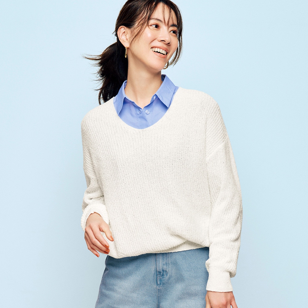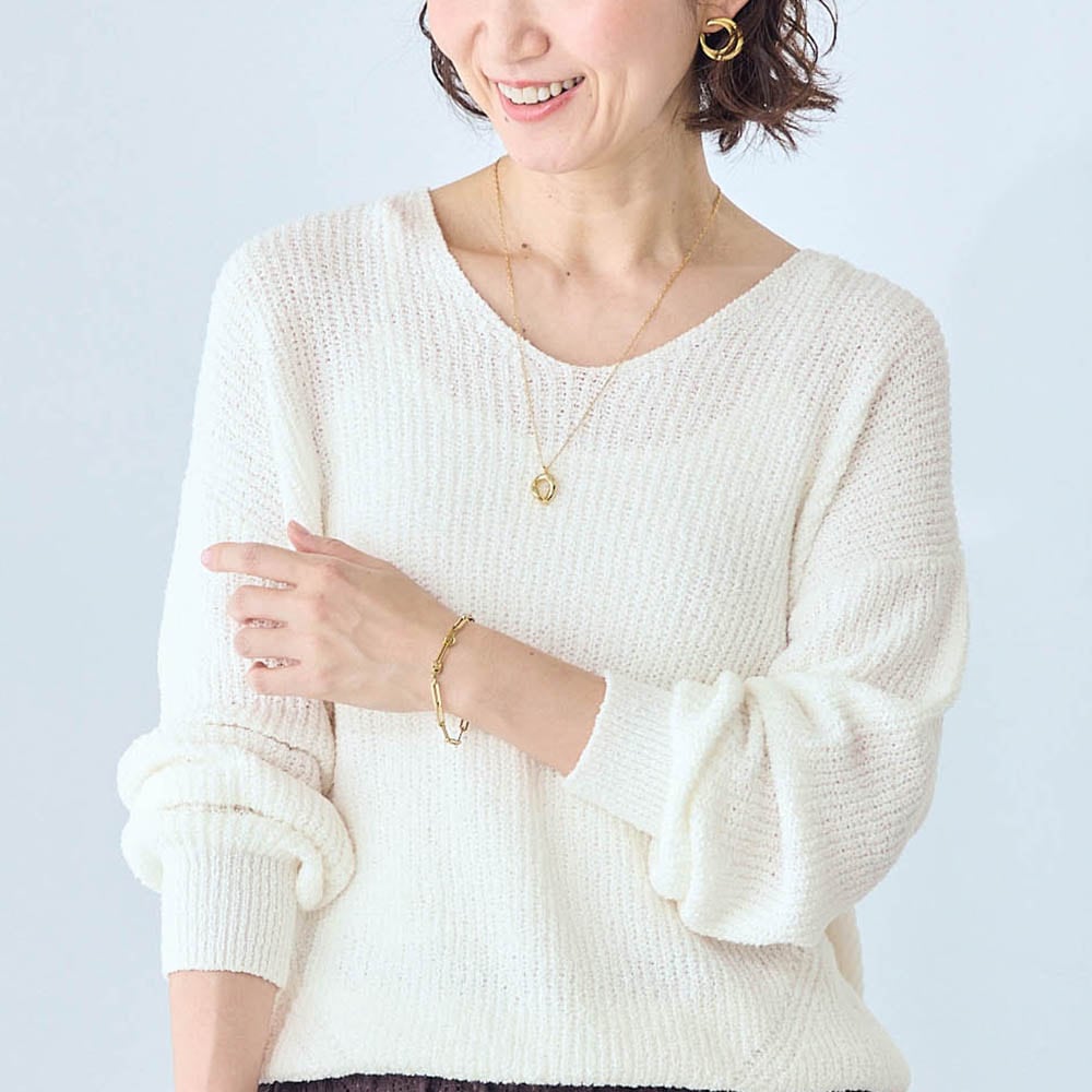 • ポコポコとした糸でふんわりやわらかく仕上げたブークレ素材