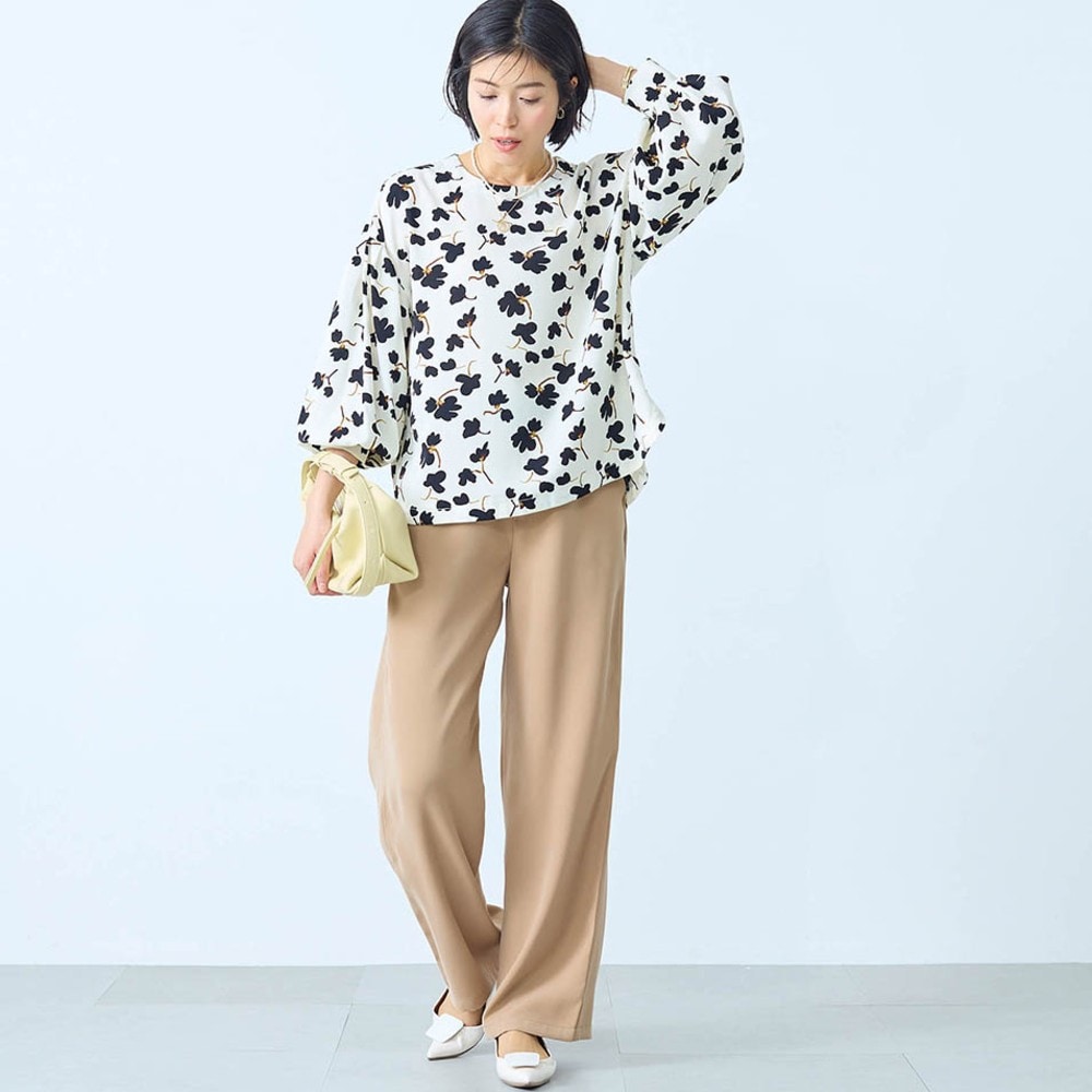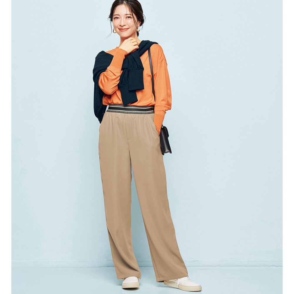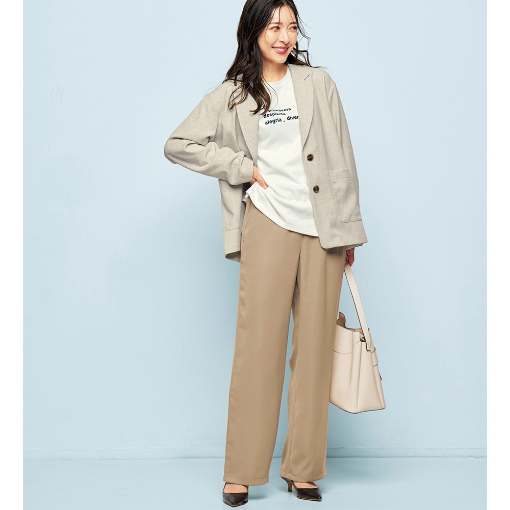 身長約165cmですが、股下の長さもちょうどいい感じです。ワイドパンツですが、裾も広がりすぎず、ほどよいシルエットだと思います。