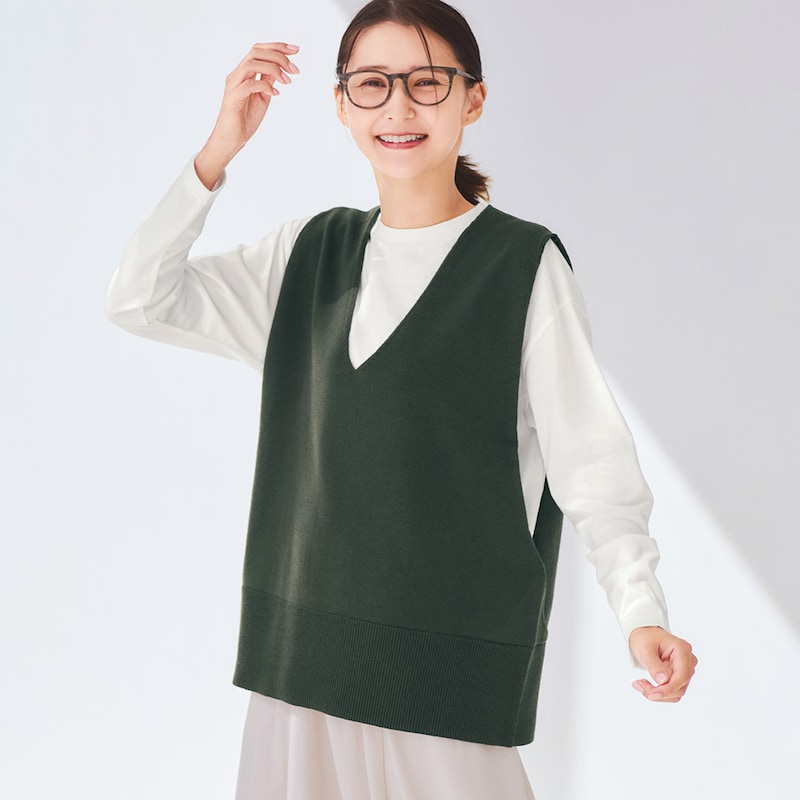 ●ベスト:<ニット>ポリエステル77%、アクリル14%、ナイロン9%、カットソー:<カットソー>ポリエステル67%、綿33%