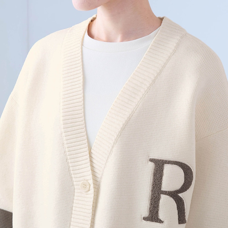 ・「R」の文字は立体感のあるサガラ刺繍でさりげなくアピール