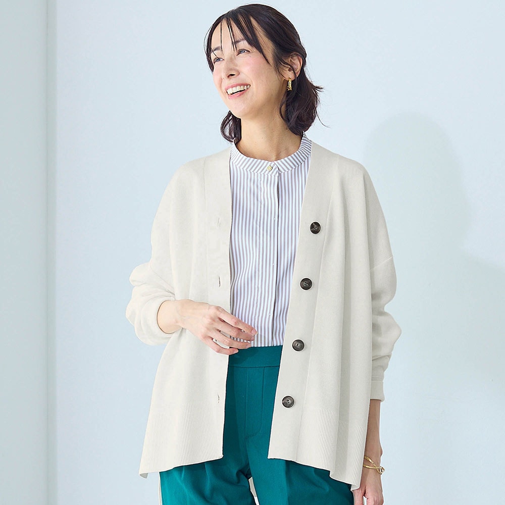 このカーディガンが届いてからというもの 暑いくらいで、カーディガンを必要としてない私…。なので、着る機会がありません。案外 生地がしっかりしていて、暖かみがありそう? 秋になったら着ます。毛玉ができにくいといいな。