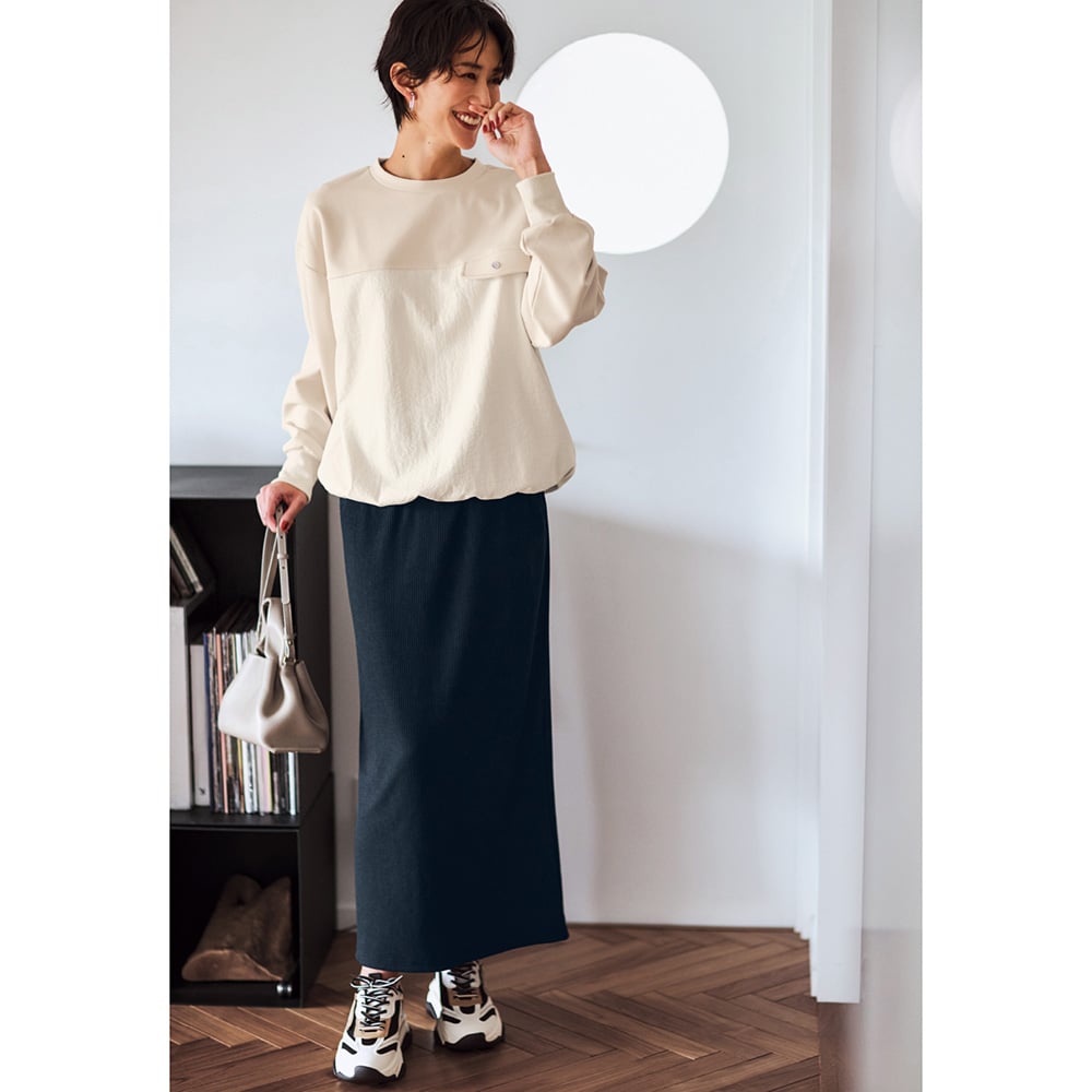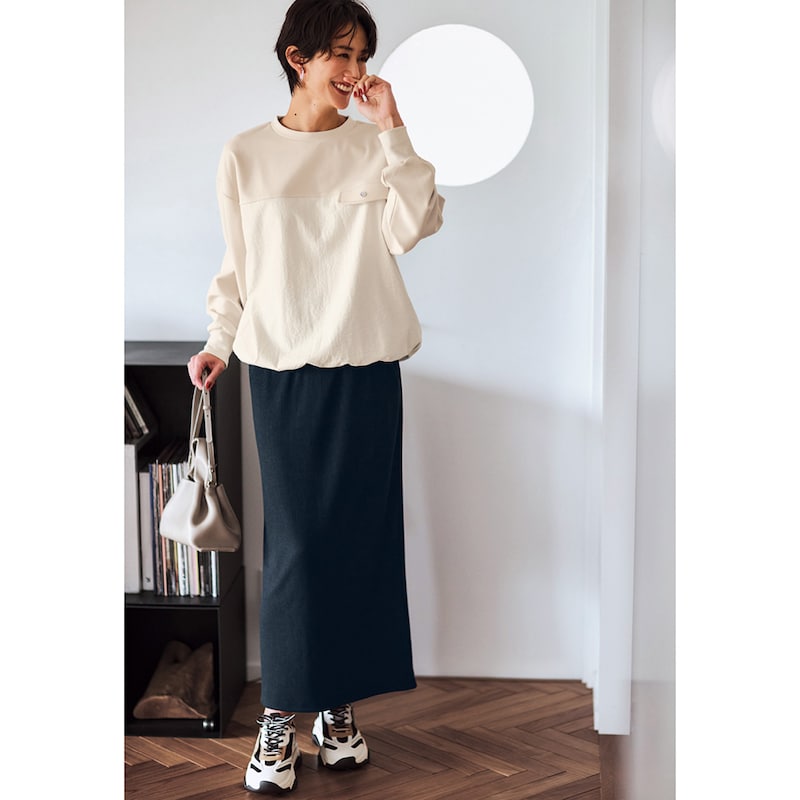 昔よくこういう感じが好きで着てたなと懐かしく、トップスを流行りに反して長めにしてお腹周りを隠せばいいやと購入。