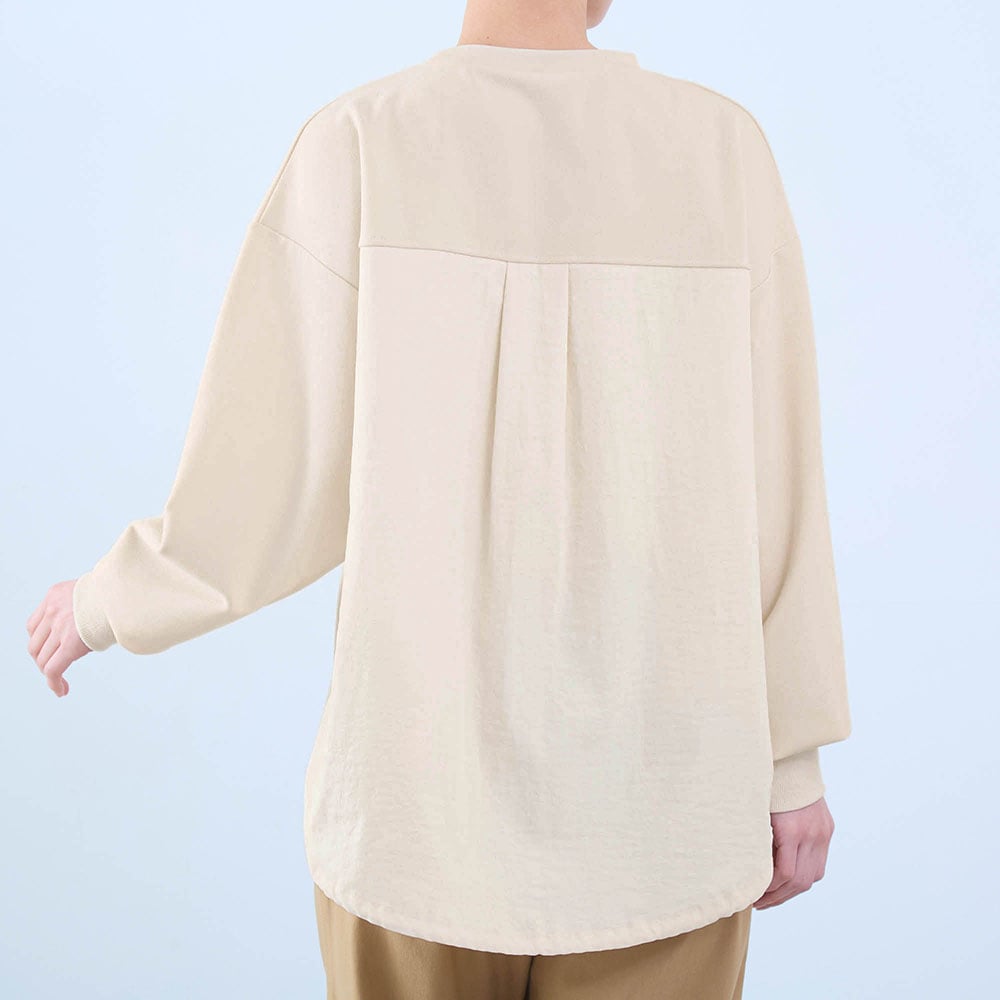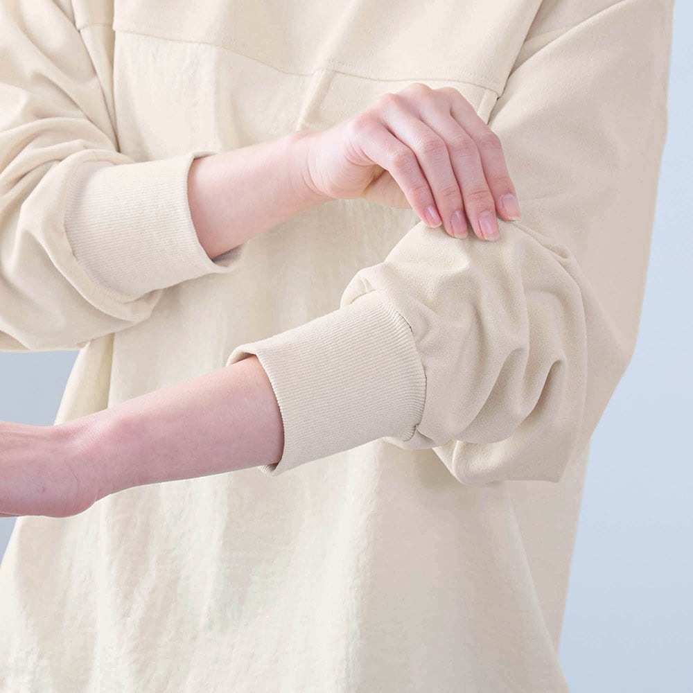 デザインはシンプルで、色はオフベージュよりホワイトに近いです。試着したときにパジャマに近いような感じがしてサイズは少し大き目、カサカサ音がしていました。購入する際には1サイズ下の物を購入したほうがいいと思います。今回は返品をさせていただきます。