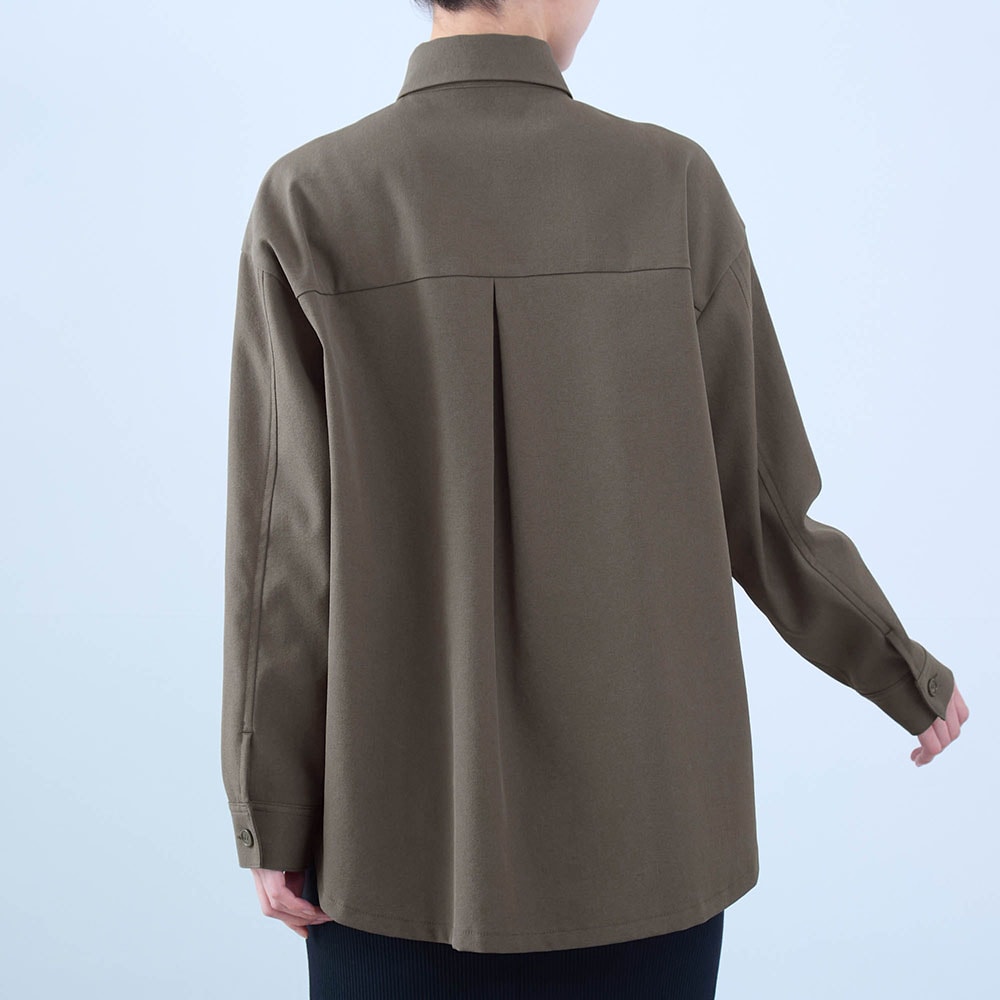 ●後ろ:前より少し丈長、ヨーク切り替え、中央タック