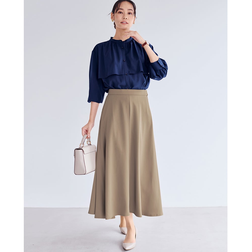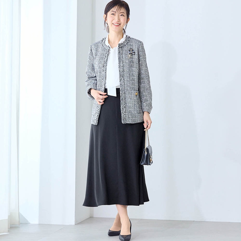 さすが!中年女性の体型を考えて作っているだけあり、実際の体型より綺麗に見え満足です。生地はお値段なりだと思いますが、質素に見えて良いと思います。