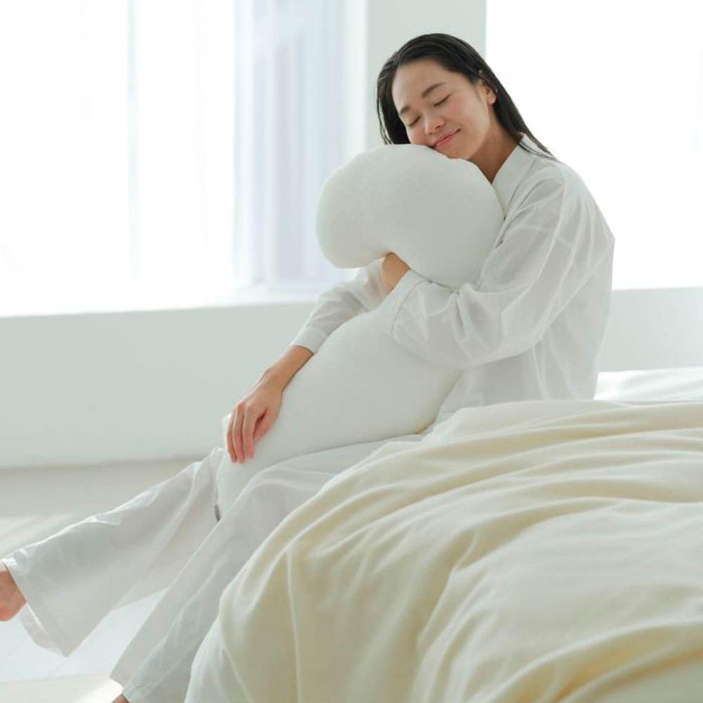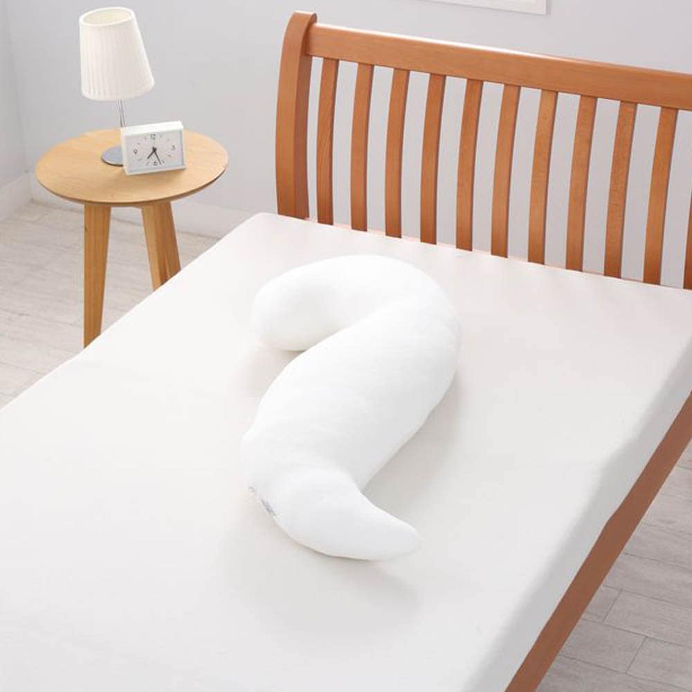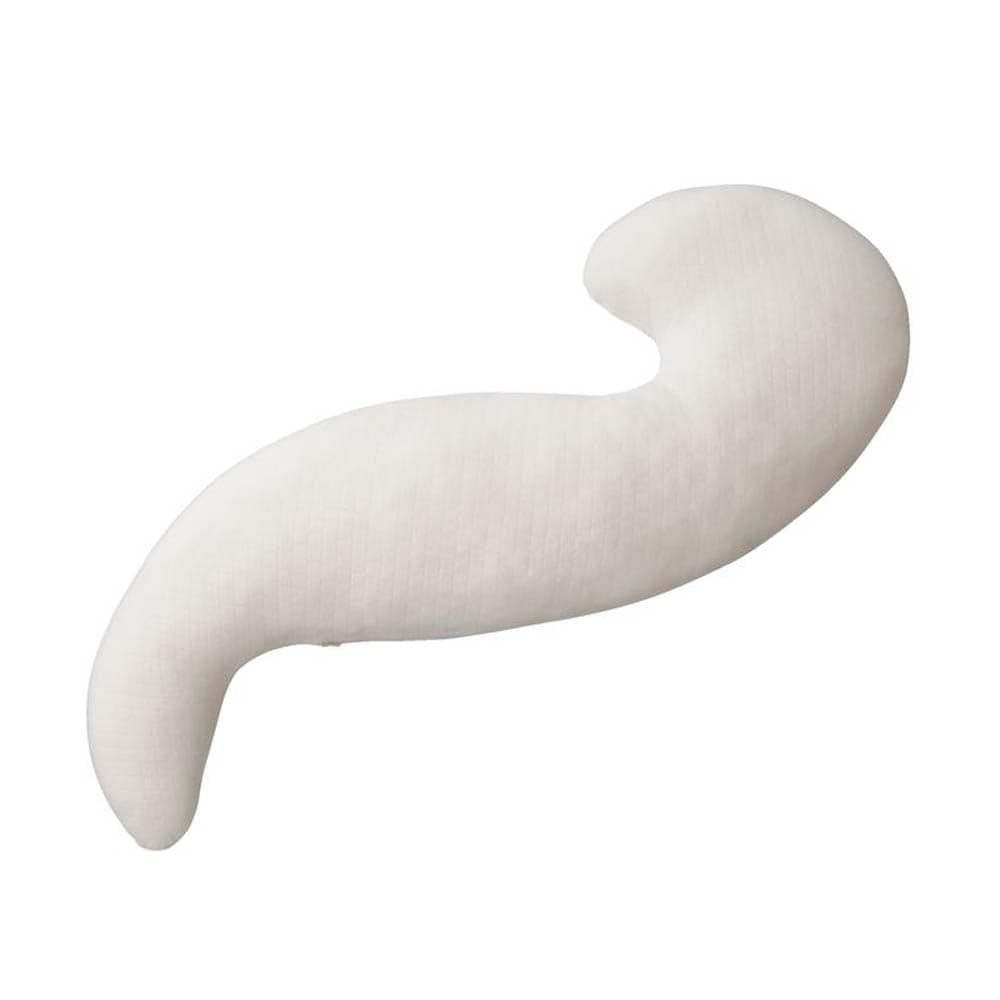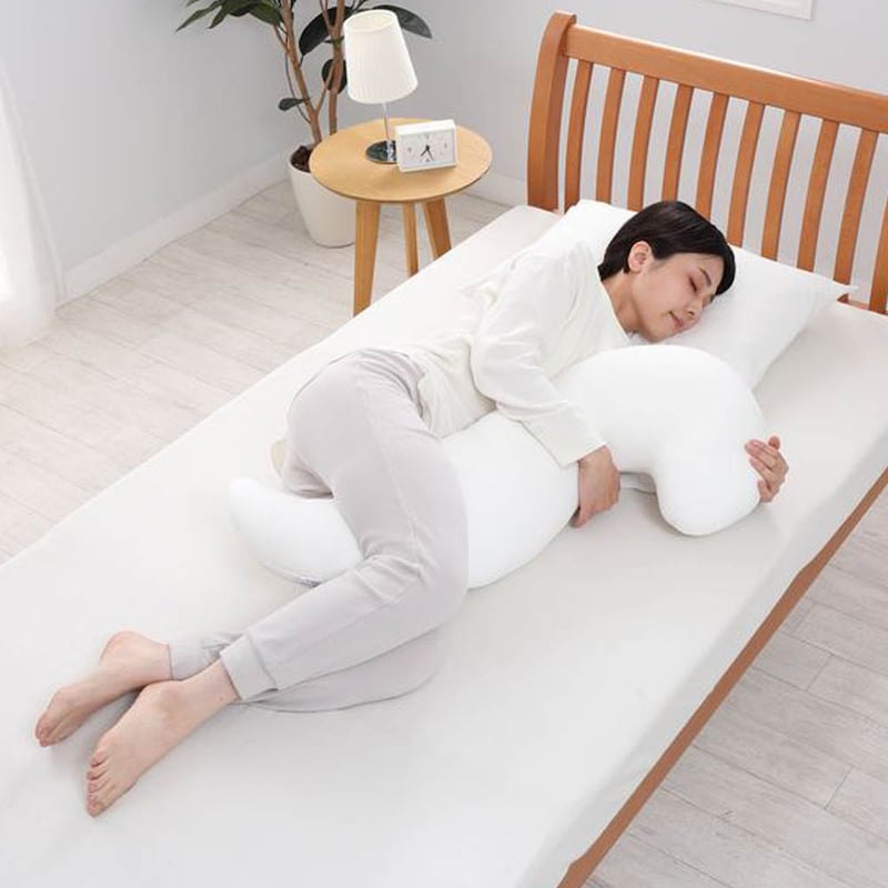 形状の説明に多少の疑問を持ちながら購入しましたが、説明通りの抱き方をすると驚き!とても快適な状態の抱き枕でした。カバーを買うか迷いまだ買っていないのですが、カバーなしの手触りが気持ち良すぎて現状で大満足しています。とてもかわいくて名前をつけました。