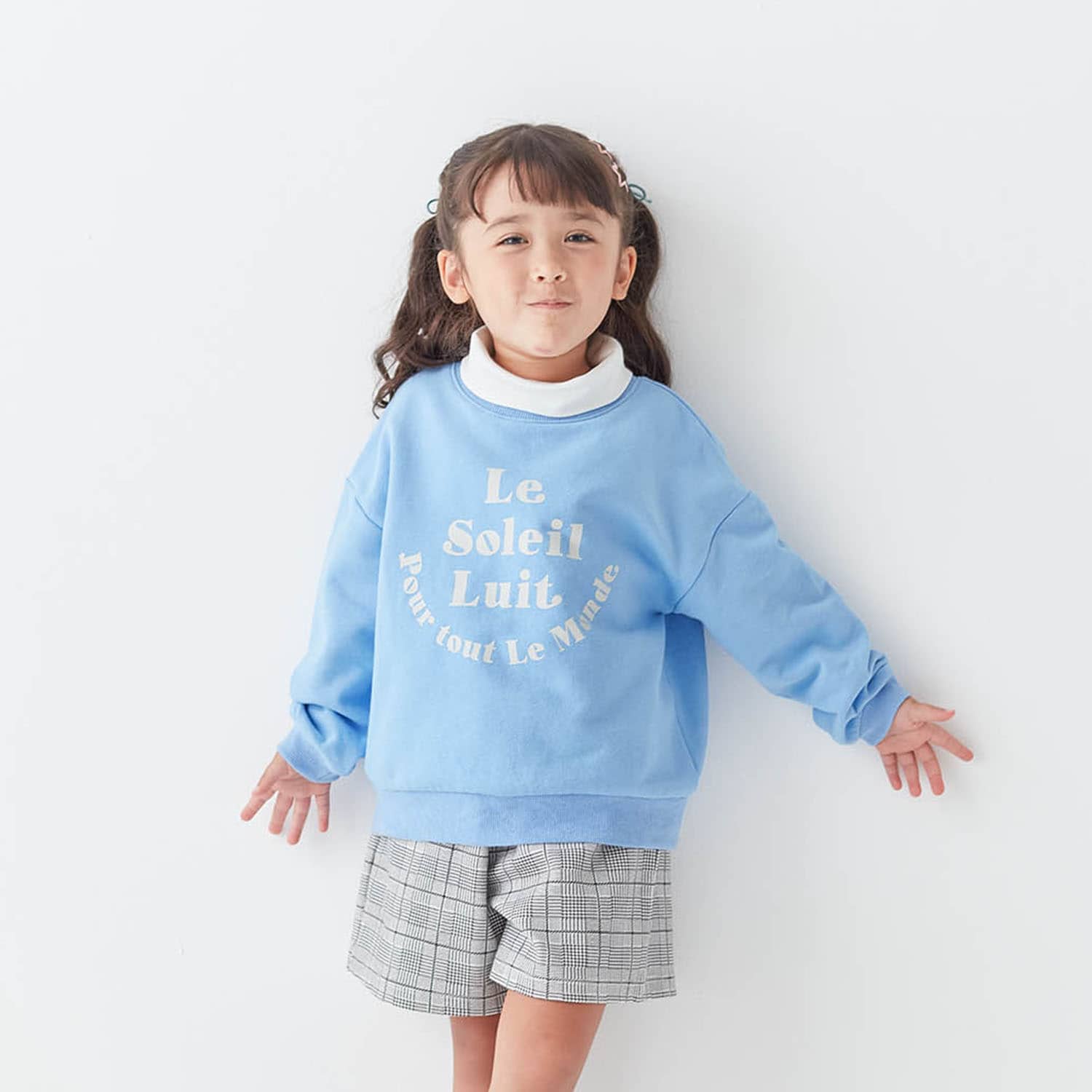 ・タートルネックとスウェットのレイヤード風デザイン
