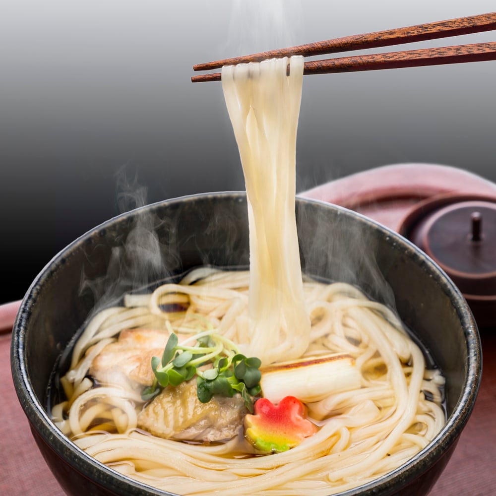 強いコシと餅のような粘り、喉越しの良さをお楽しみください