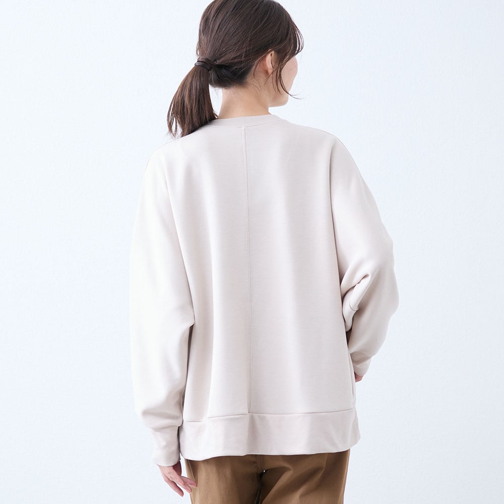 写真を投稿したくなるほど、裏側は奇妙です。ポケットが垂れ下がるので両ポケットを紐でつなぎ合わせてあります。形は悪くないし生地もモチモチはしていて着やすいですが、尖ったものやマジックテープなどにくっつくと最悪です。引っ張られると伝線したようになるので、手洗いかネットに入れて洗濯します。普段遣いには向いていない生地です。