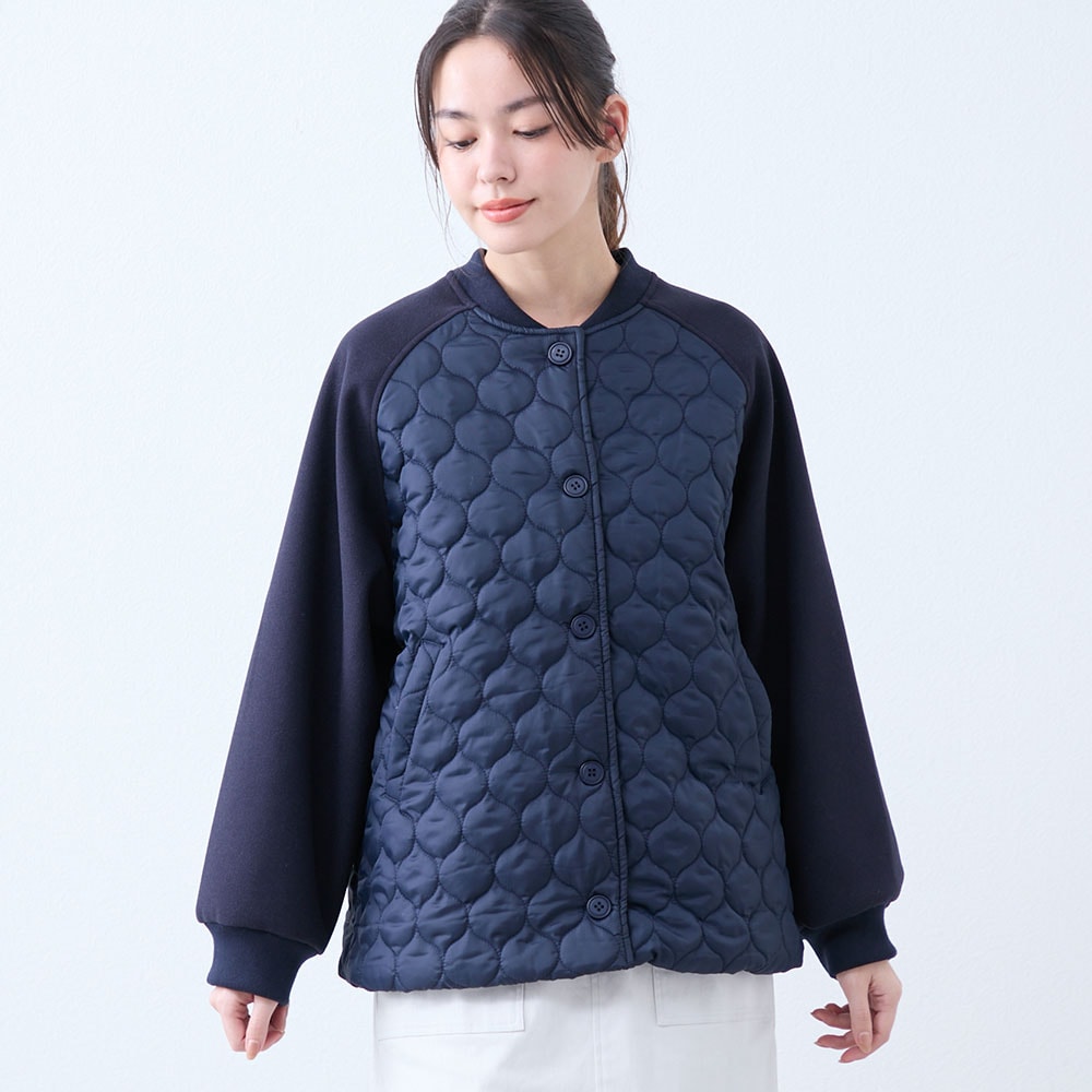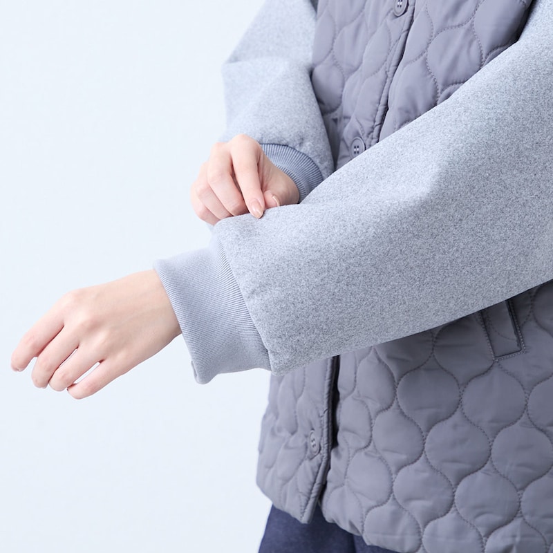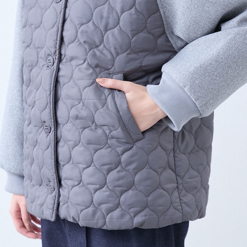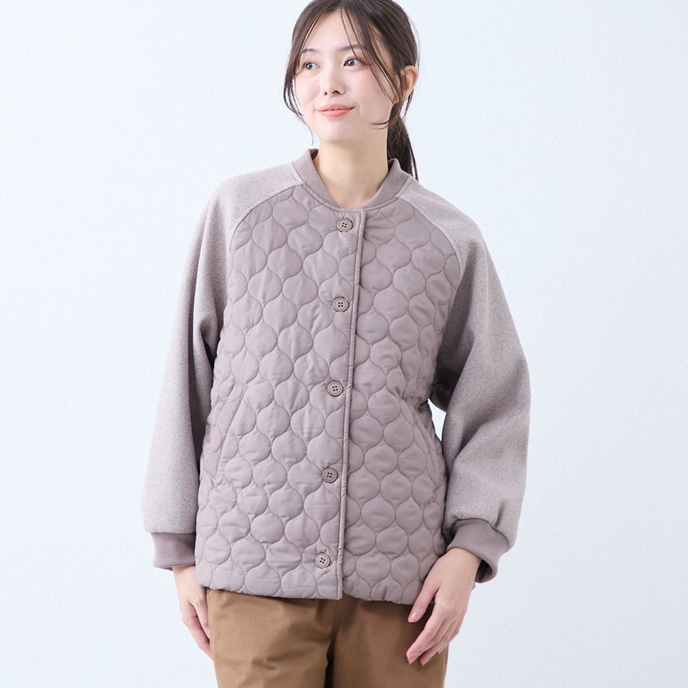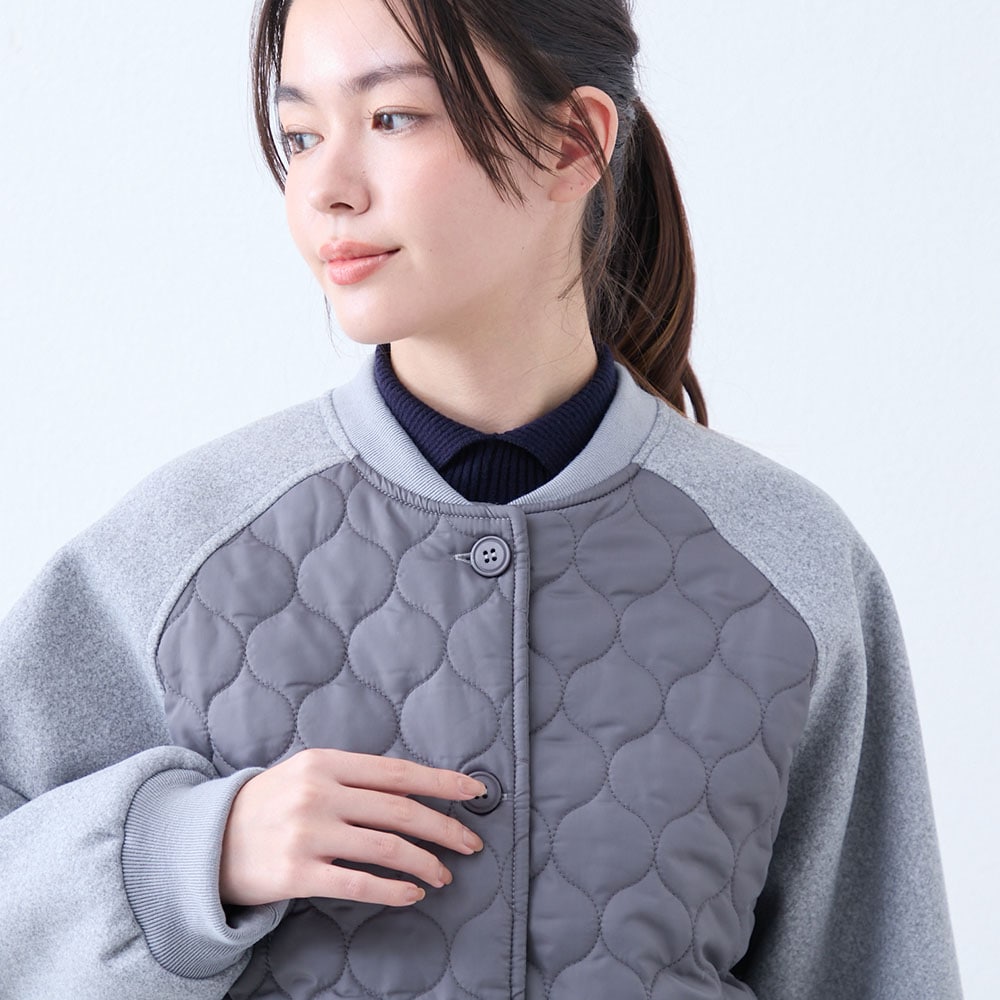 キルティング×フェイクウールの切り替えがかわいい軽量ブルゾン