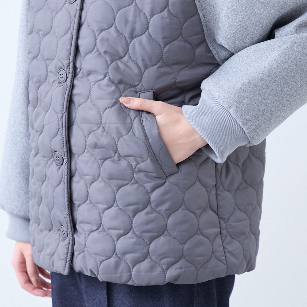 キルト×フェイクウール切替ブルゾン