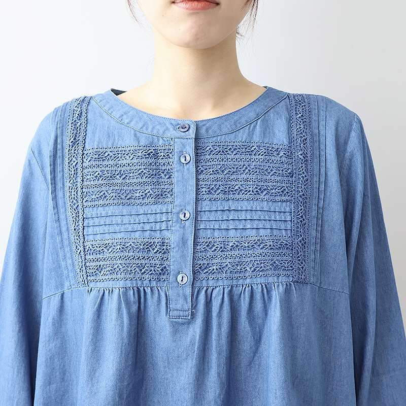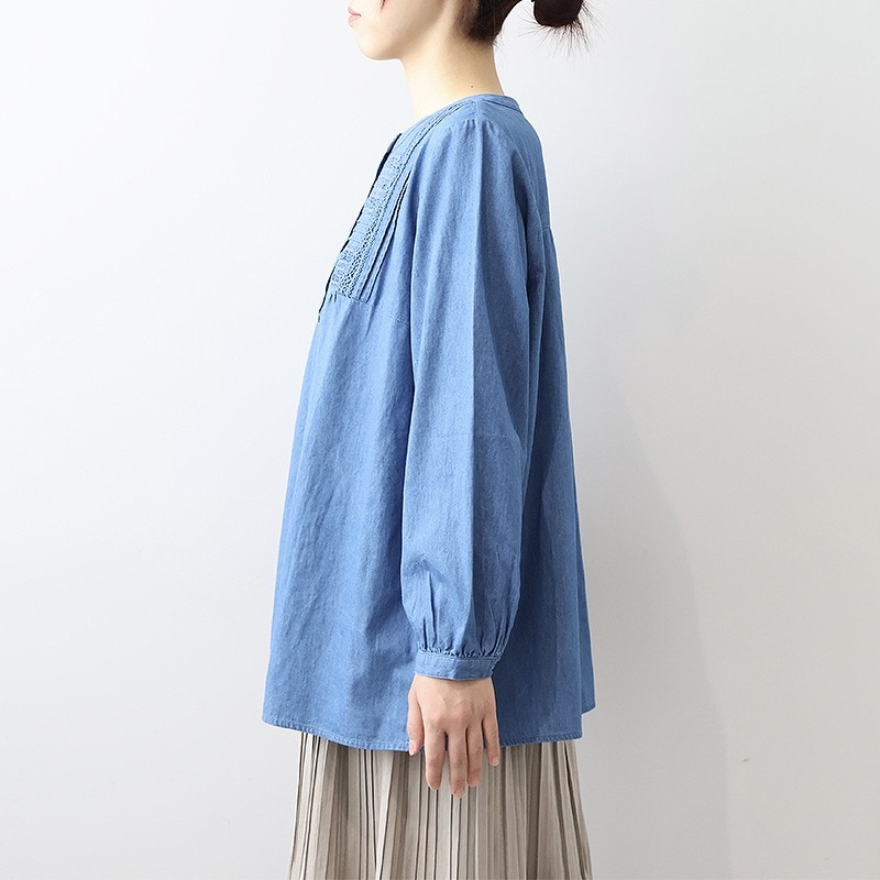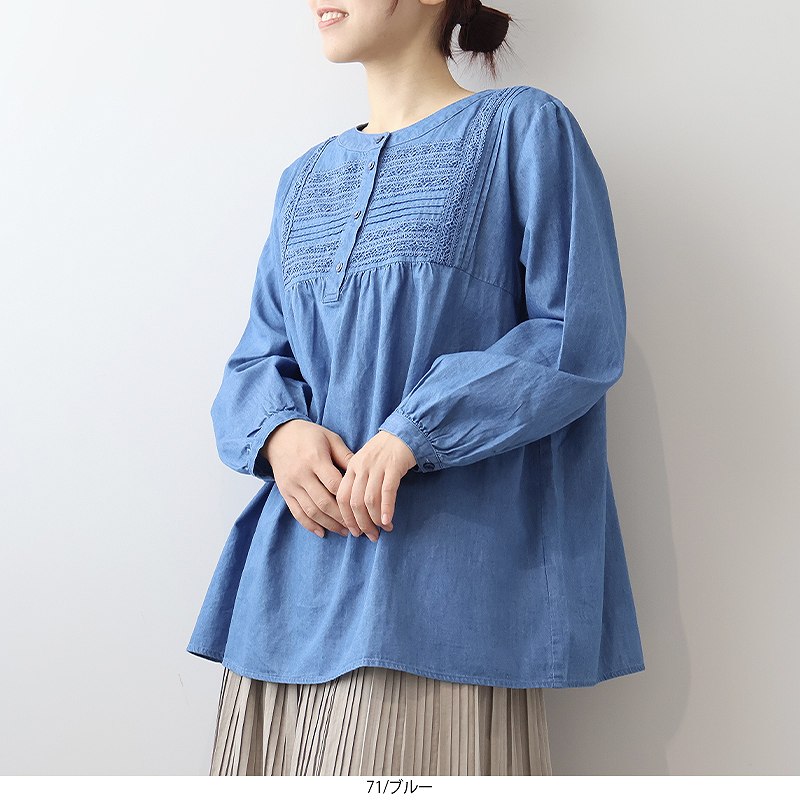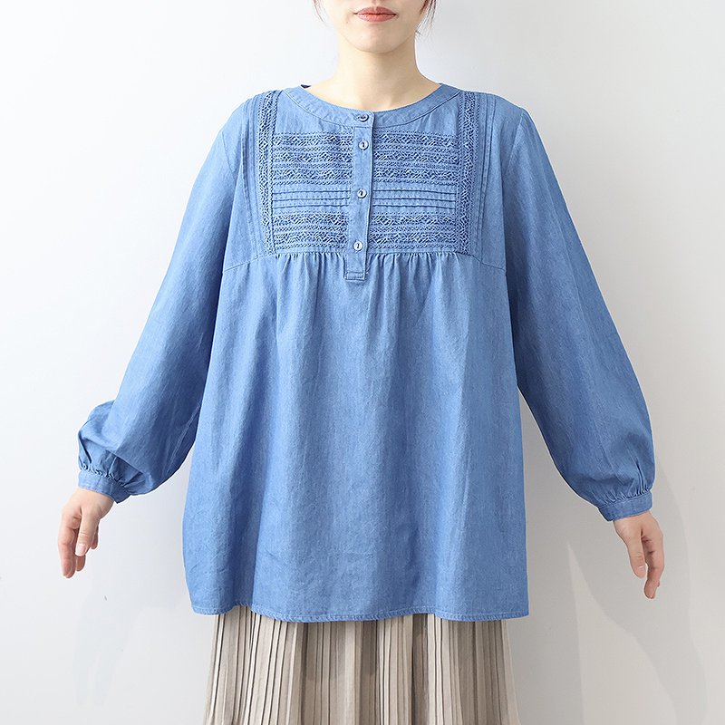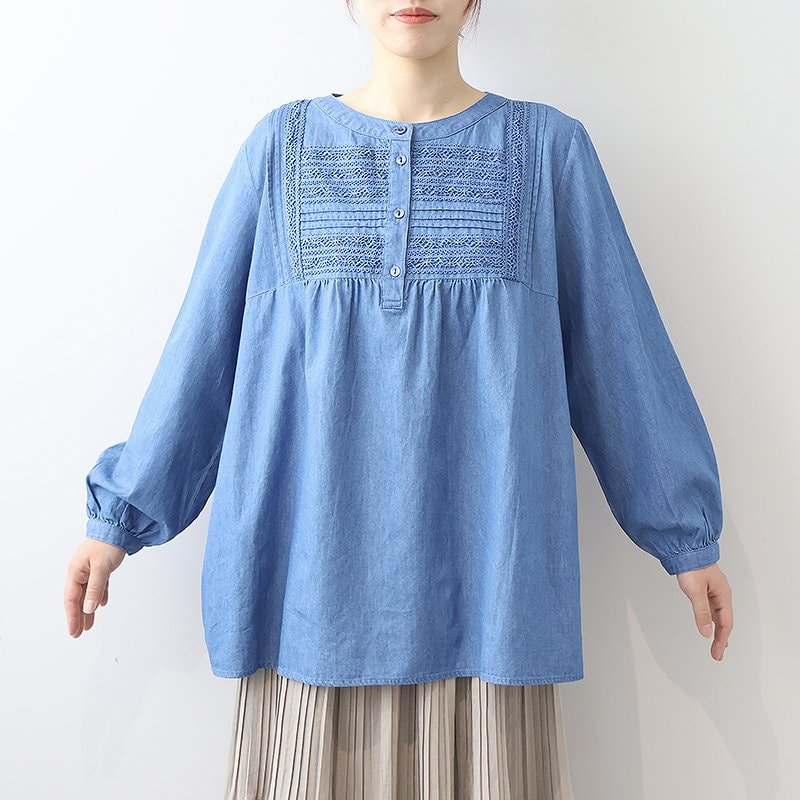 デニムフロントレースブラウス 【大きいサイズ】