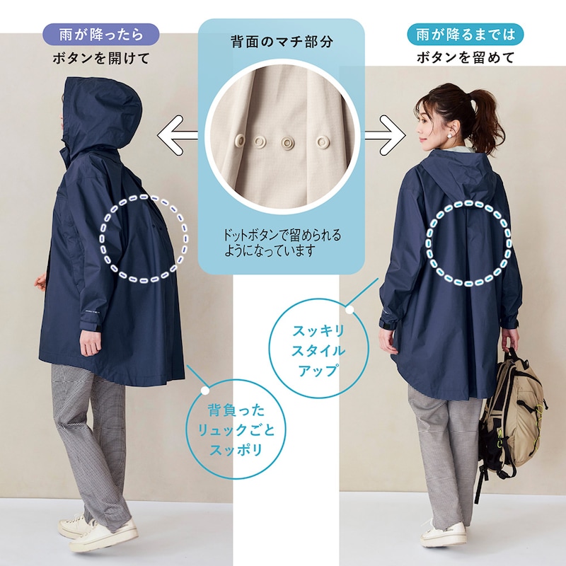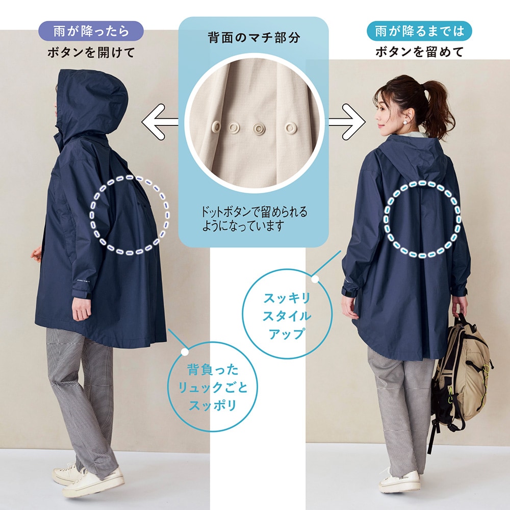 リュックごとすっぽり!濡れない、蒸れない防水透湿ロングジャケット