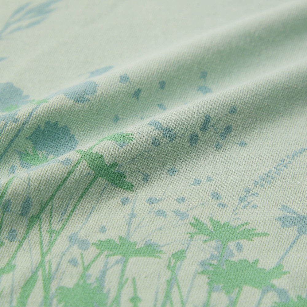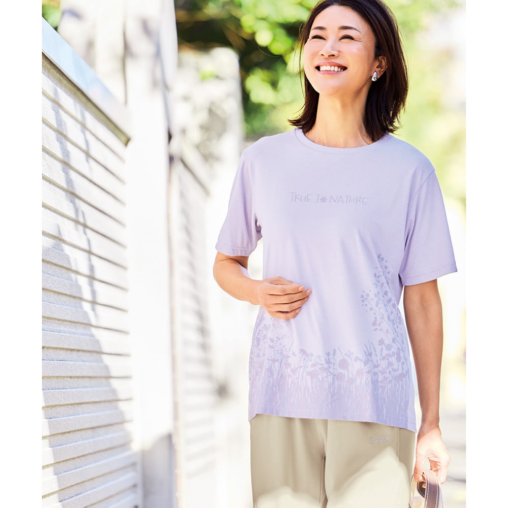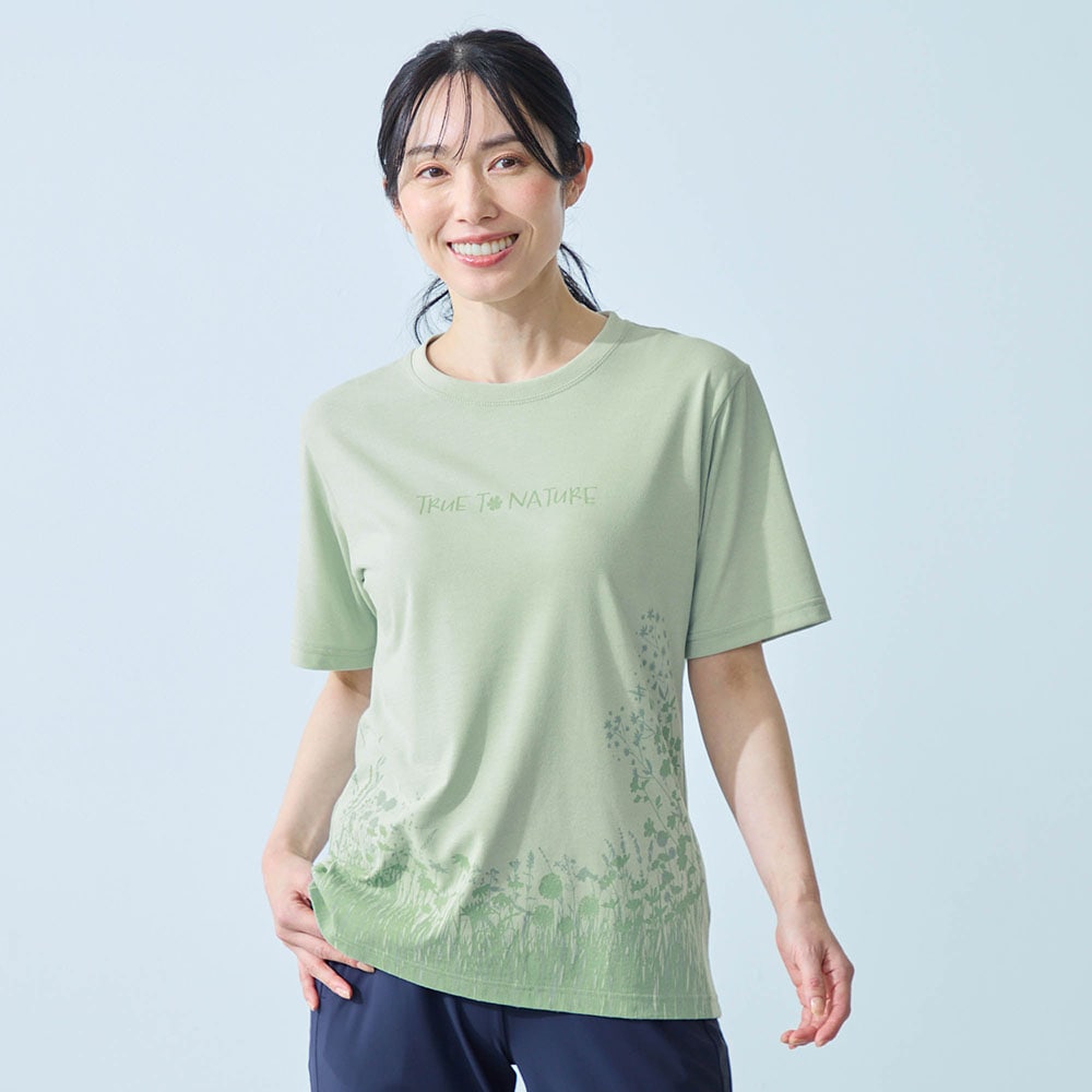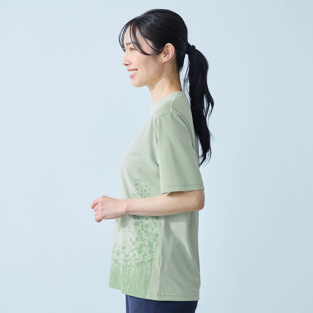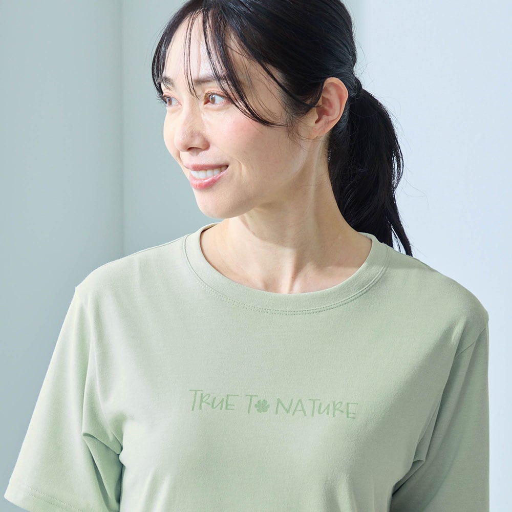 胸元ロゴや、虫から見た世界を描いたさりげないプリントが好印象
