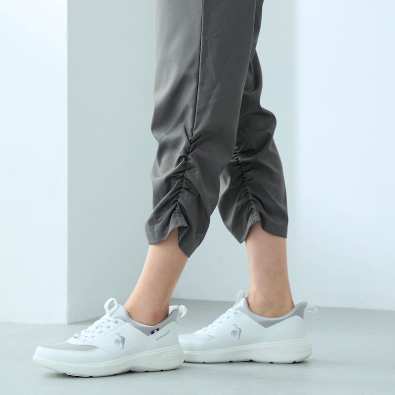 ・裾にシャーリングを入れ、ワンツーコーデもこなれ見え