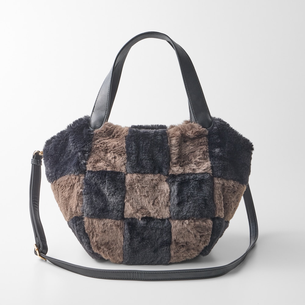やわらかな手ざわりの キルティングエコファーバッグ(2WAY)