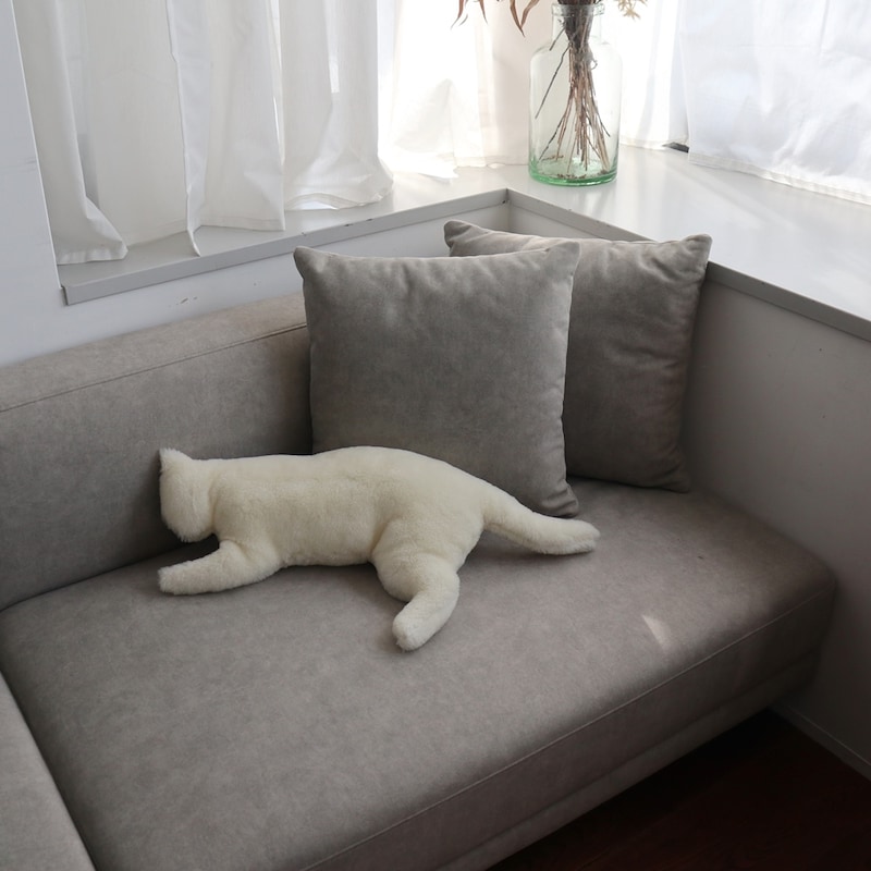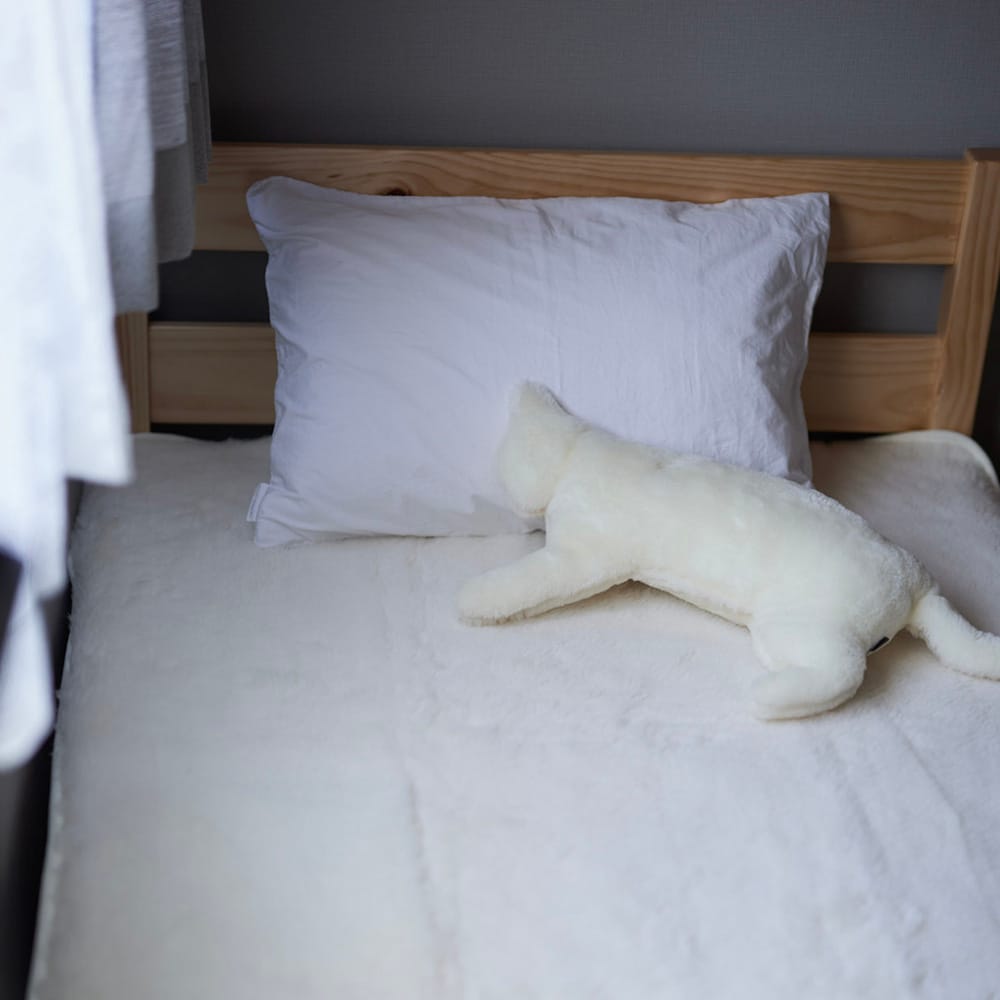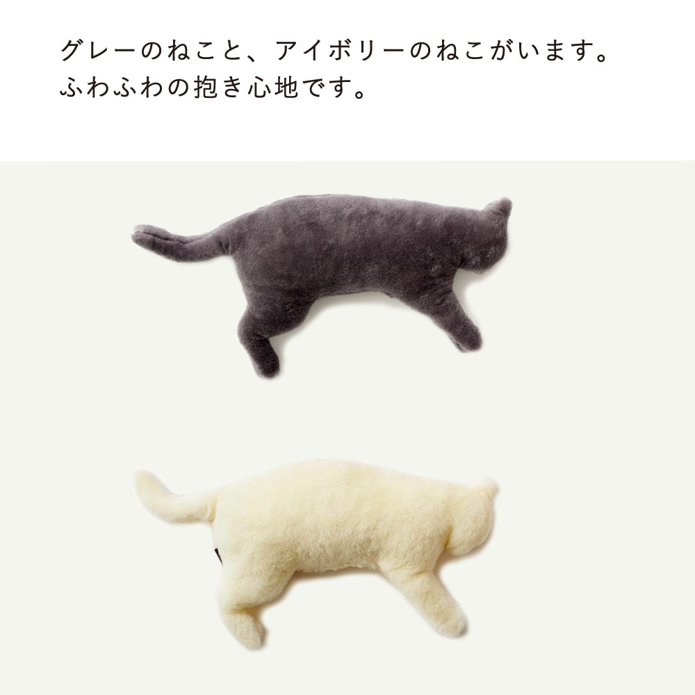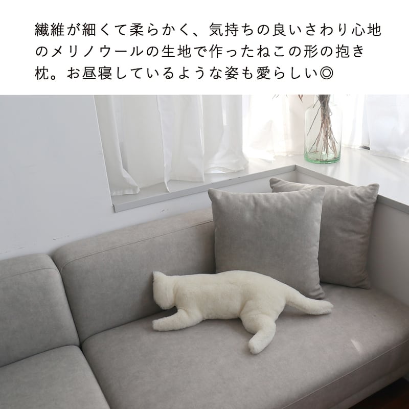 まるで本物の猫が寝ているようなデザイン メリノウールのふわふわな肌ざわりの抱き枕です