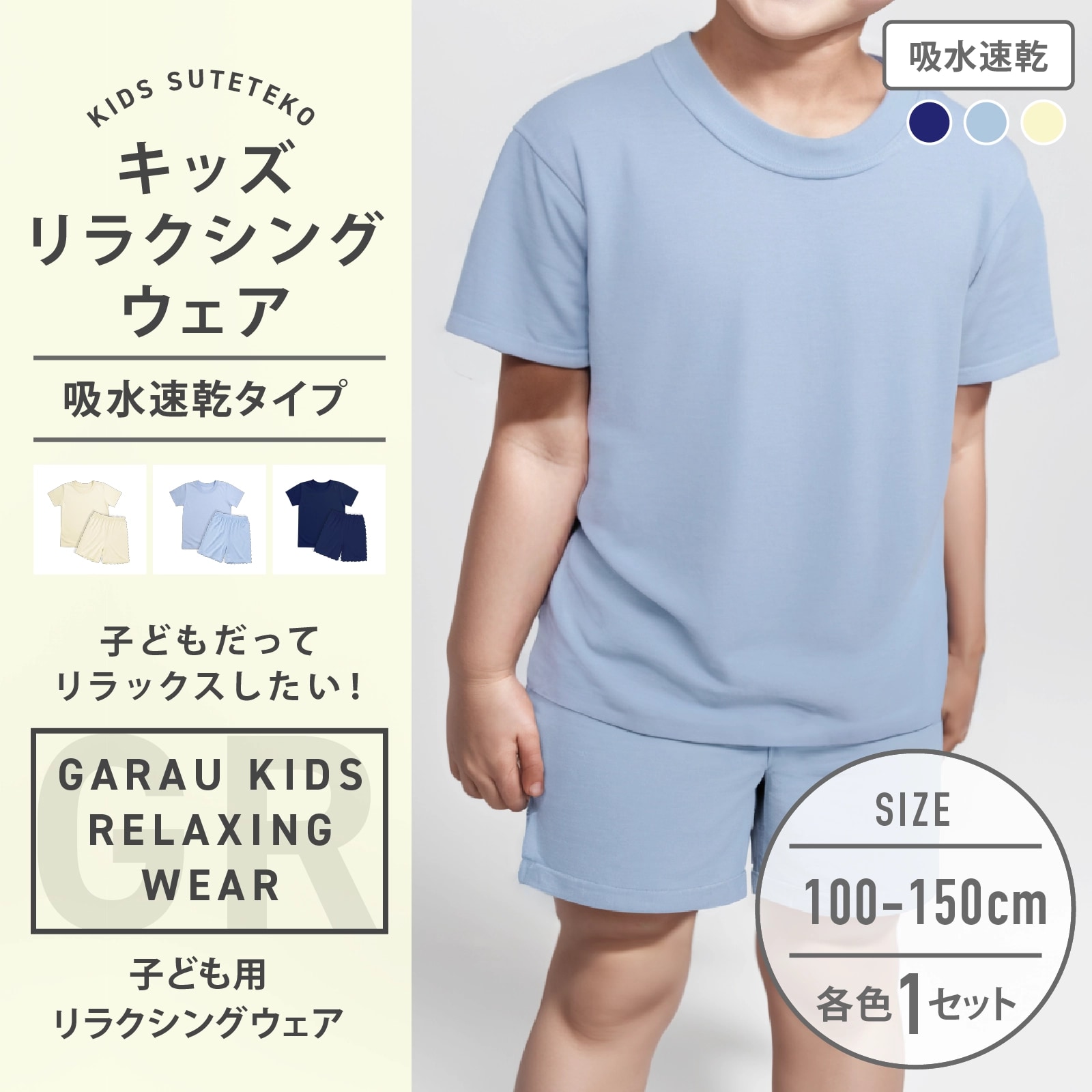 半袖シャツとショートパンツがセットになったリラクシングウェアは、子どもたちの毎日をより快適にするために設計されたアイテムです。