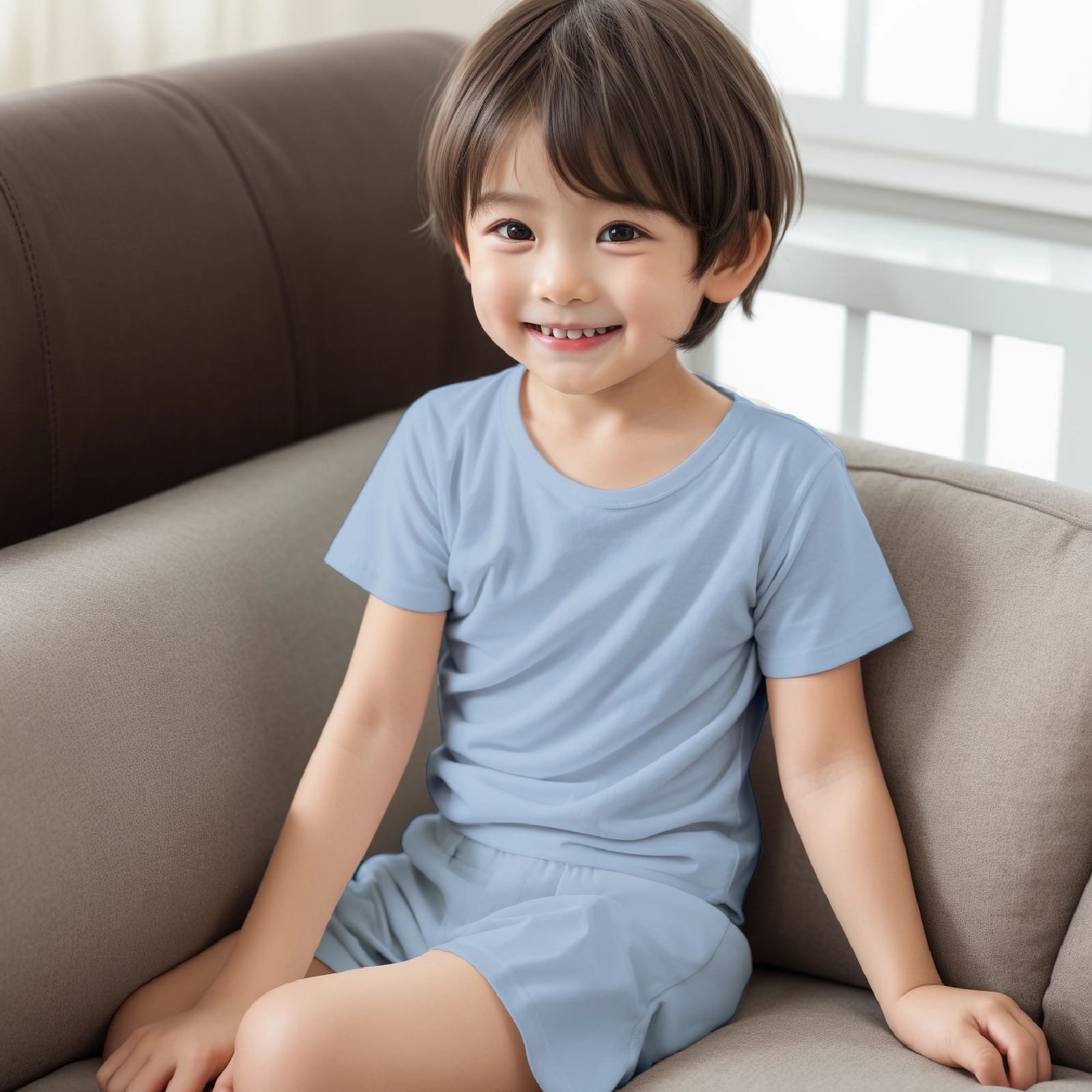 軽やかな着心地と柔らかな素材感で、お子様が自由に動き回れるデザインで家でのくつろぎのひとときに最適です。
