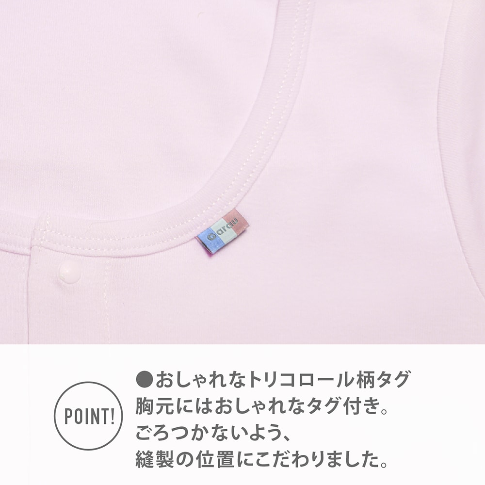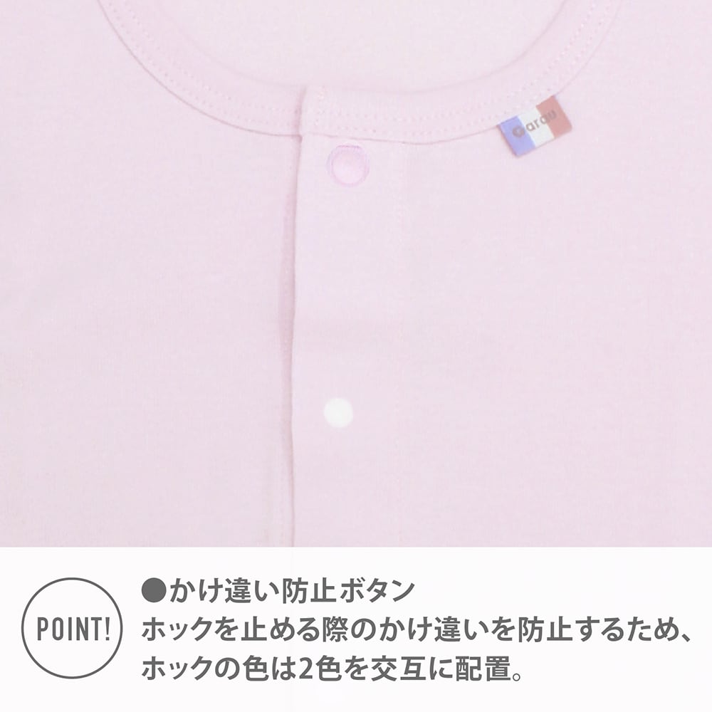 着させてあげる時だけではなく、お子さまが自分で着替えた際にもボタンの掛け違いを防ぐため2色のホックを交互に配置。