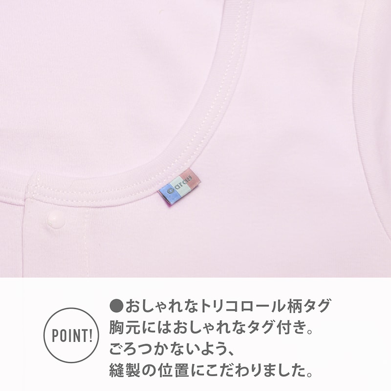 チクチクごろつかないよう、洗濯ラベルは直接肌にあたらない外付けです。