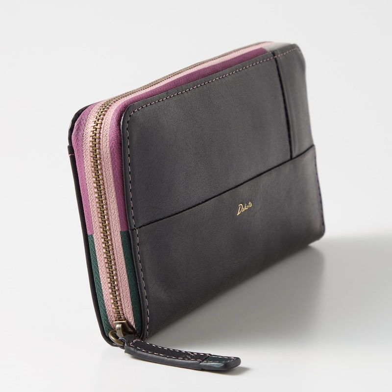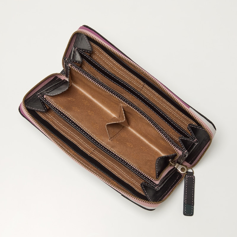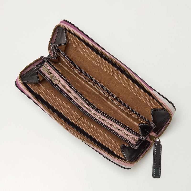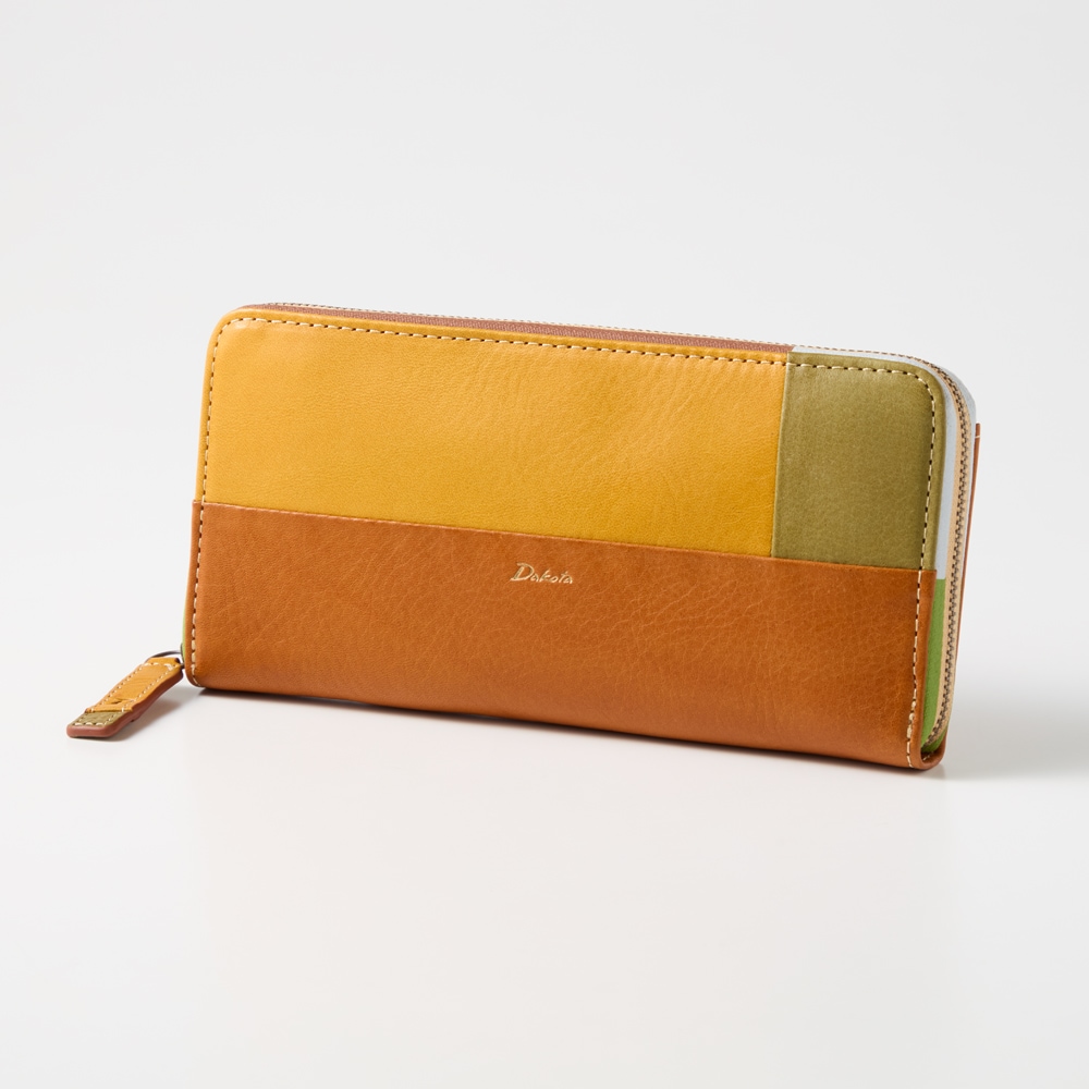 カラフルなパッチワークデザインに気分が上がる本革長財布