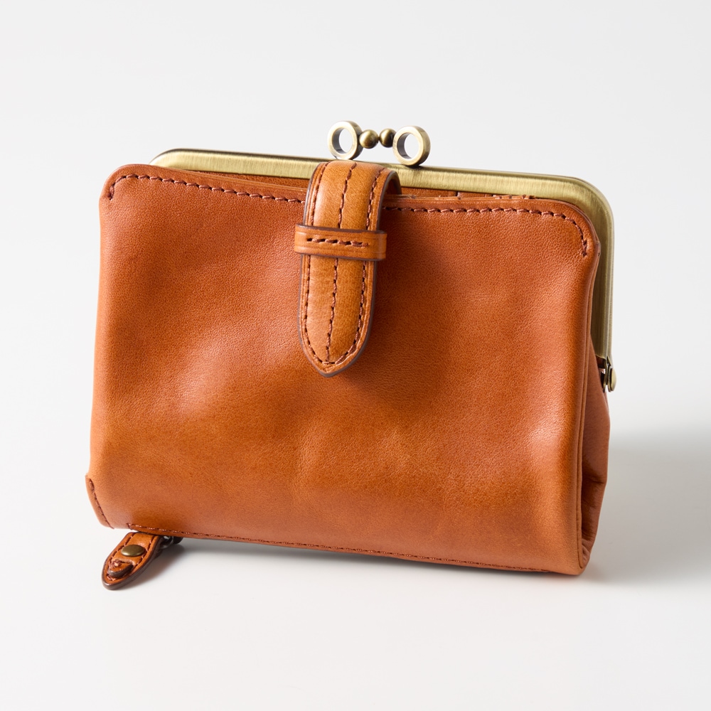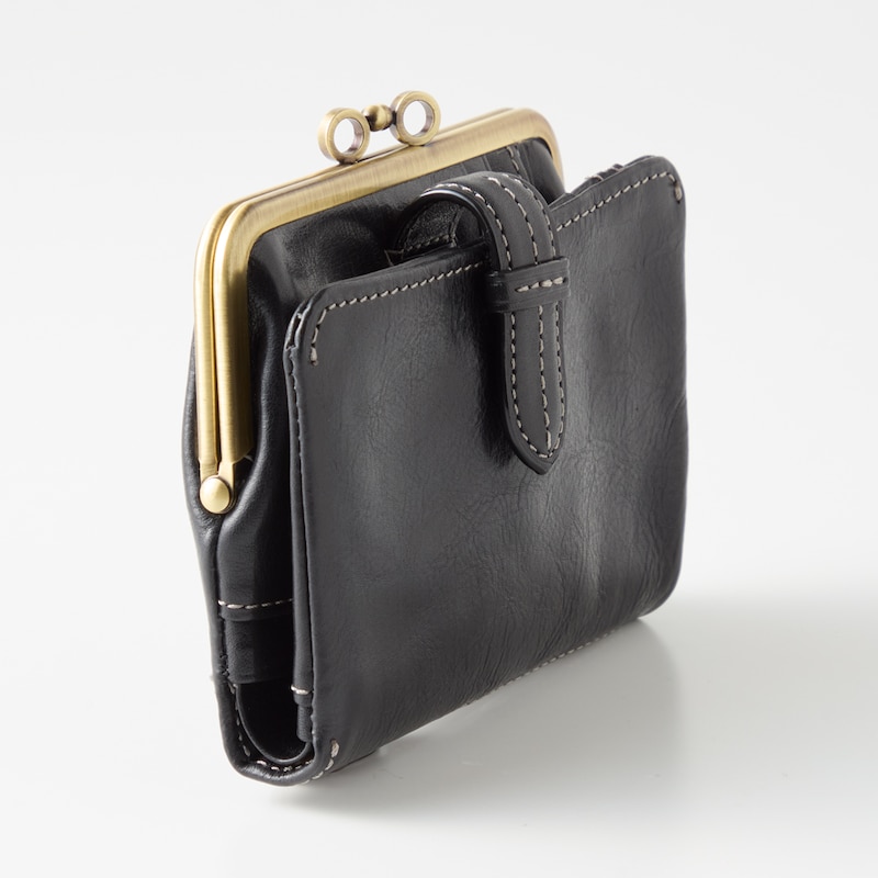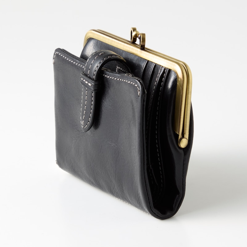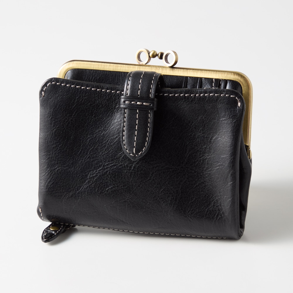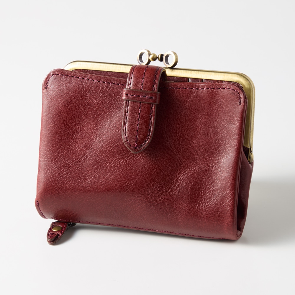 ベルトデザインがおしゃれな本革がま口二つ折りウォレット