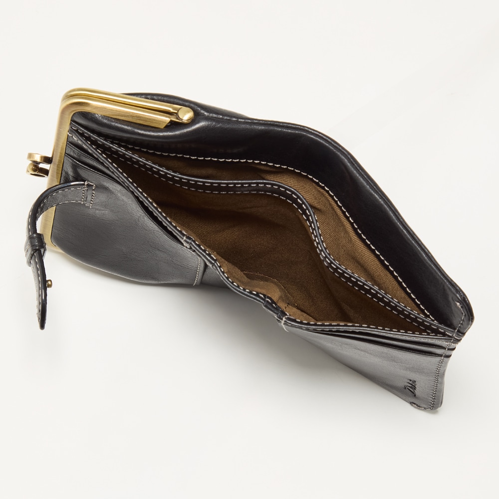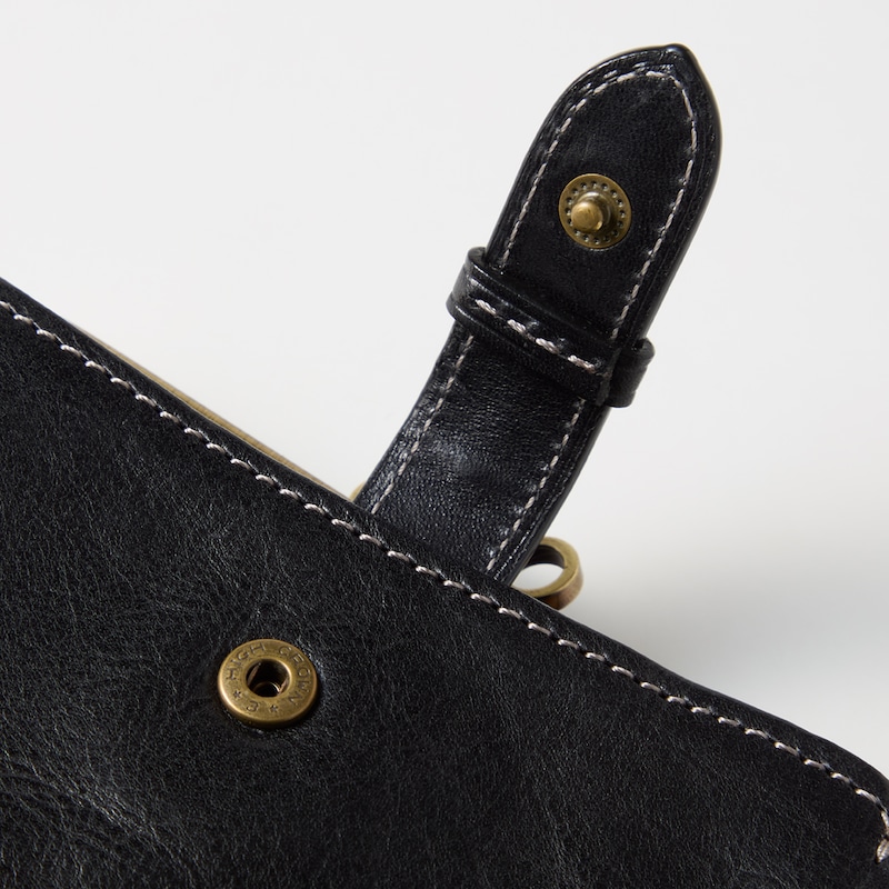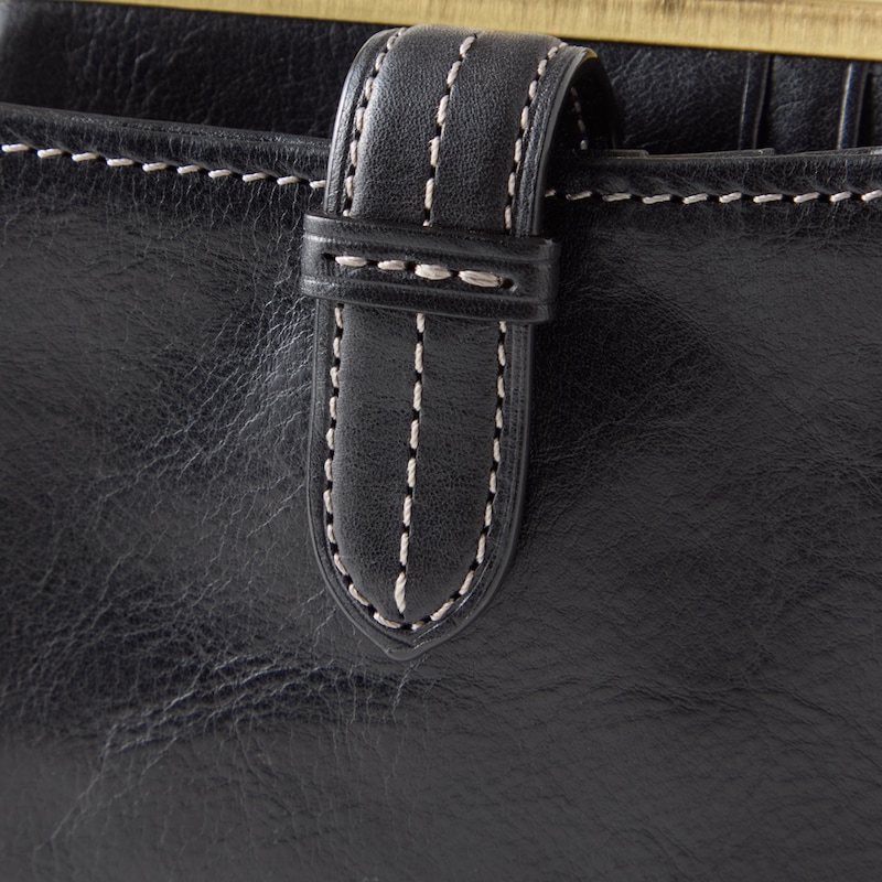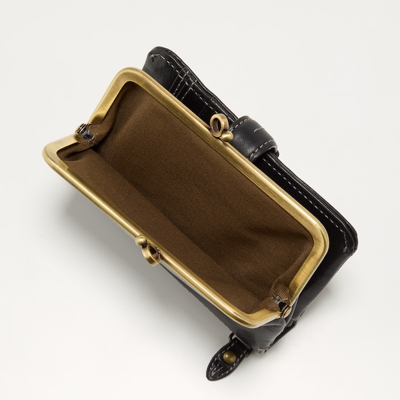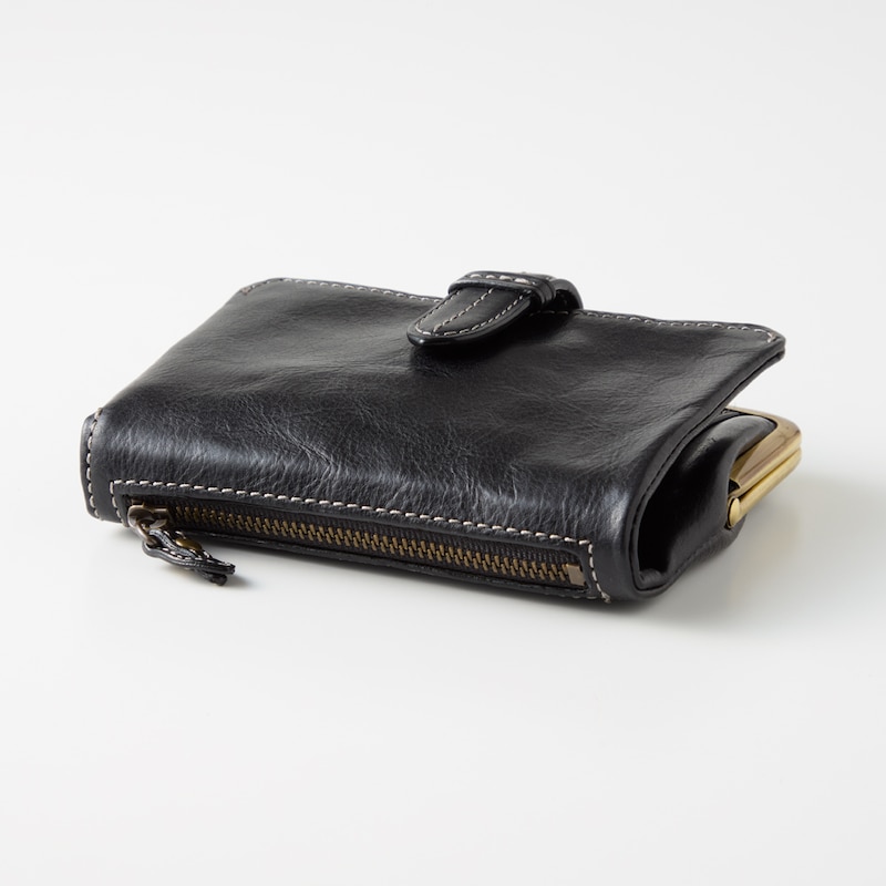 ベルトデザインがおしゃれな本革がま口二つ折りウォレット