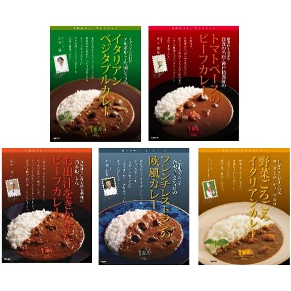 お出汁をきかせたビーフカレー・イタリアンベジタブルカレー・欧風カレー・トマトベースのビーフカレー・野菜ごろごろイタリアカレー:各200g×1個(計5個)