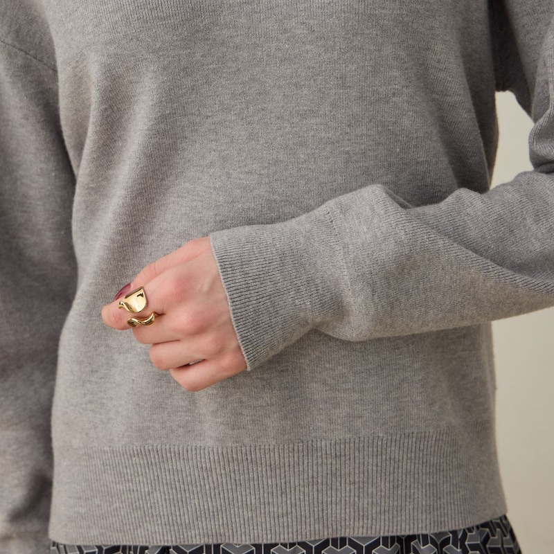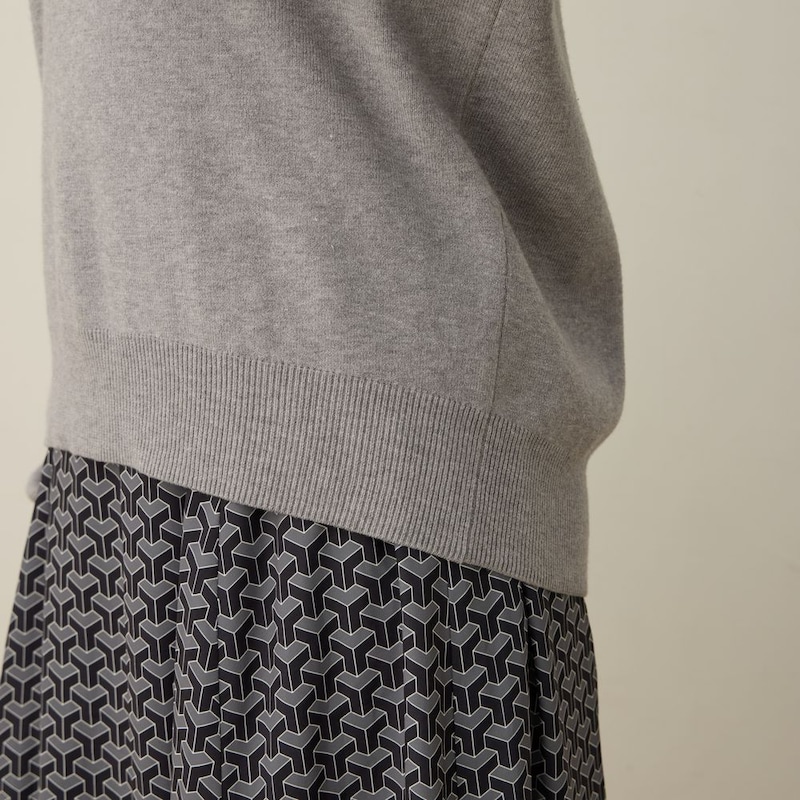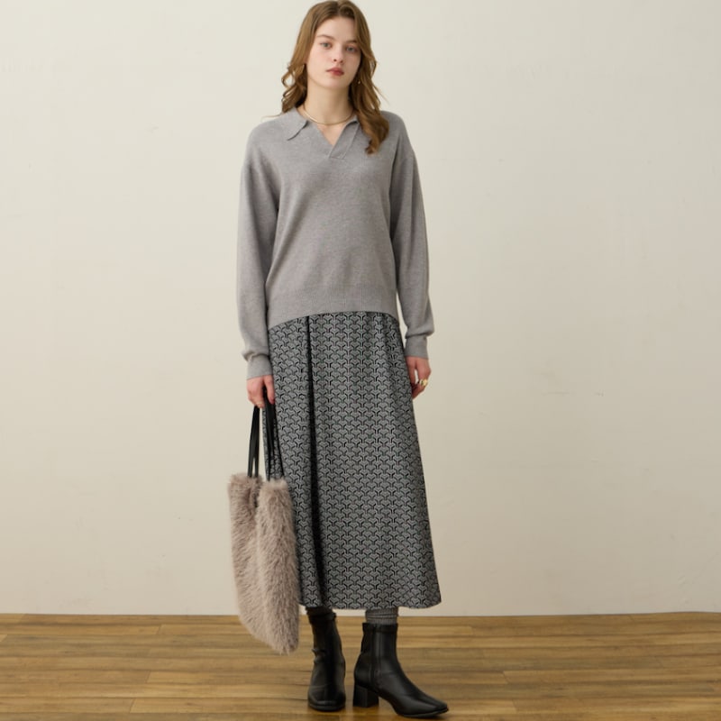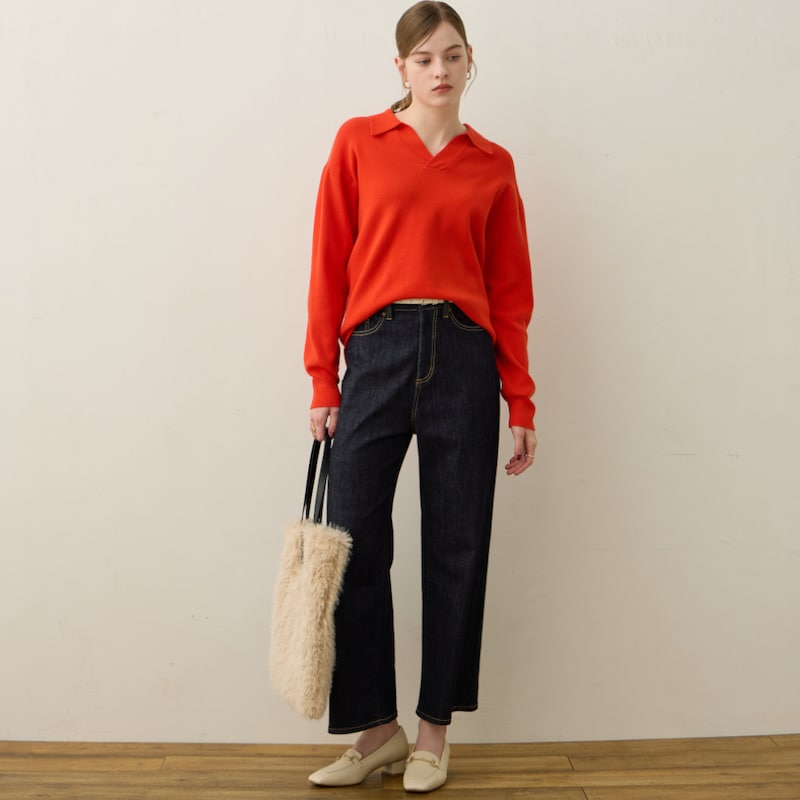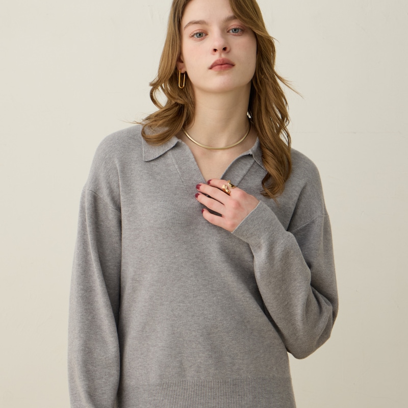 首元はスキッパーネックになっており、抜け感のある着こなしを楽しめます。