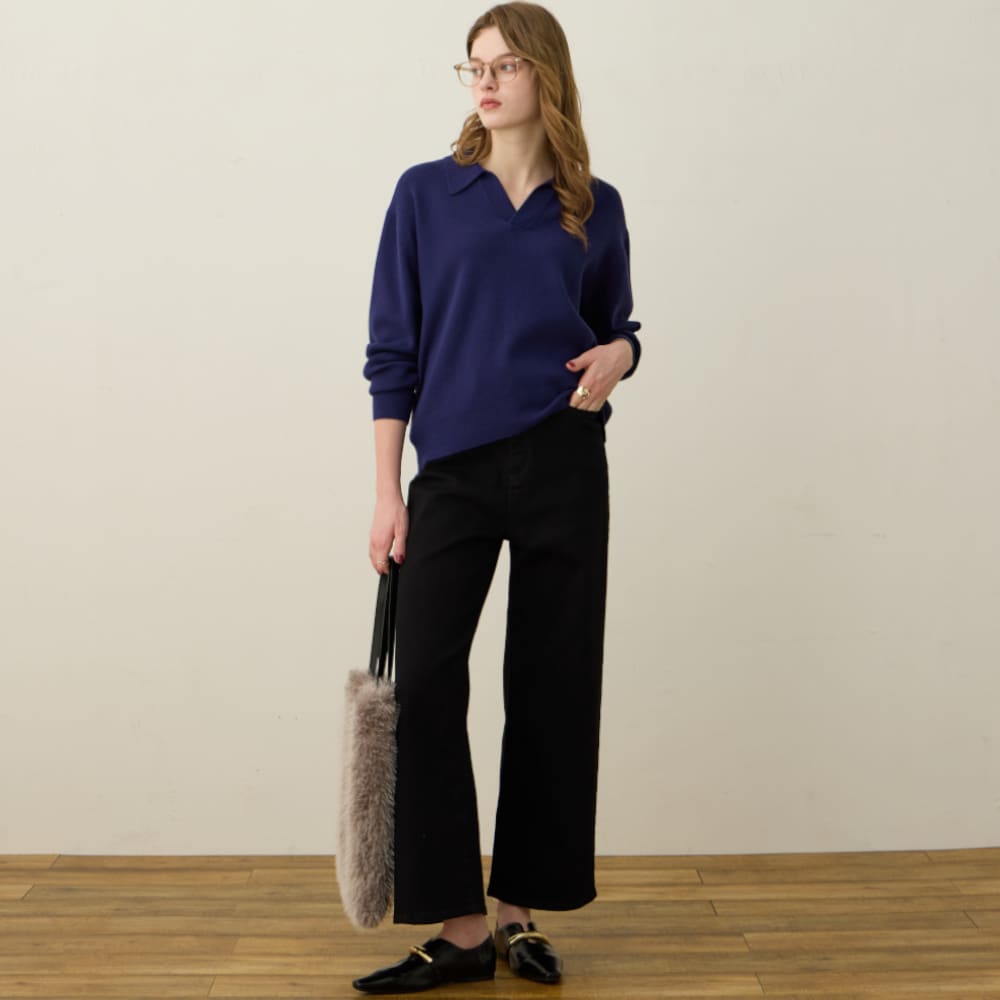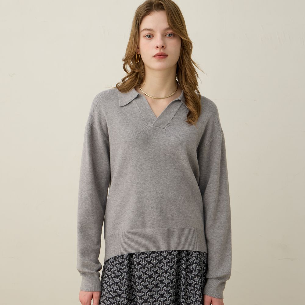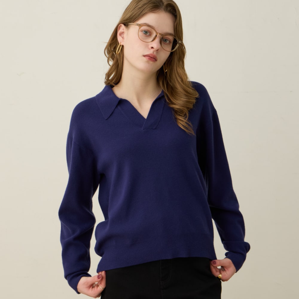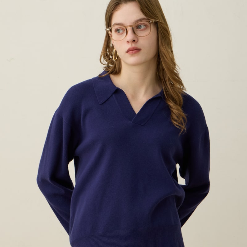 襟付きニットプルオーバー