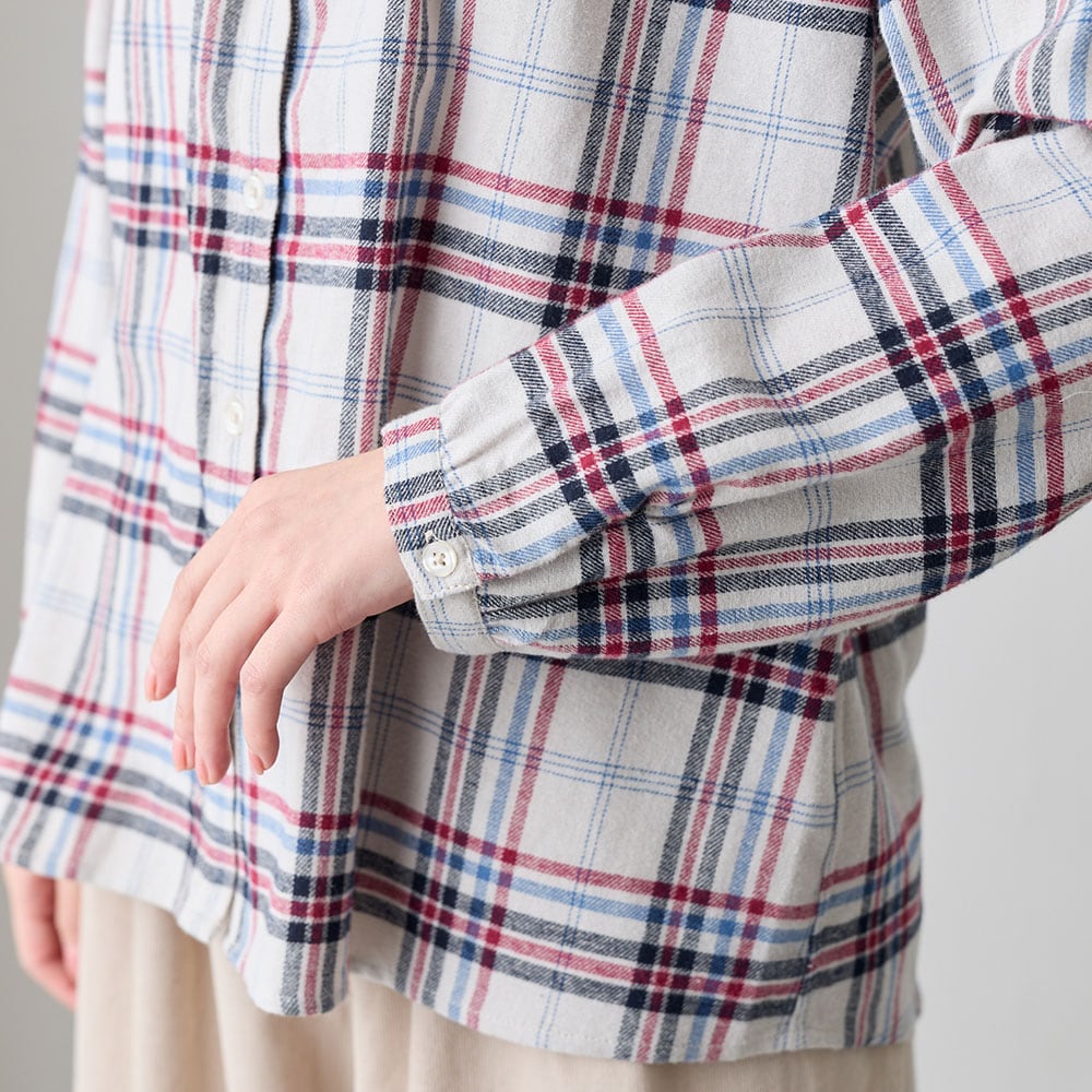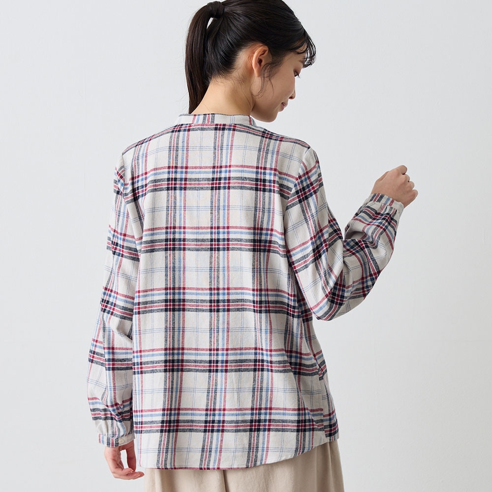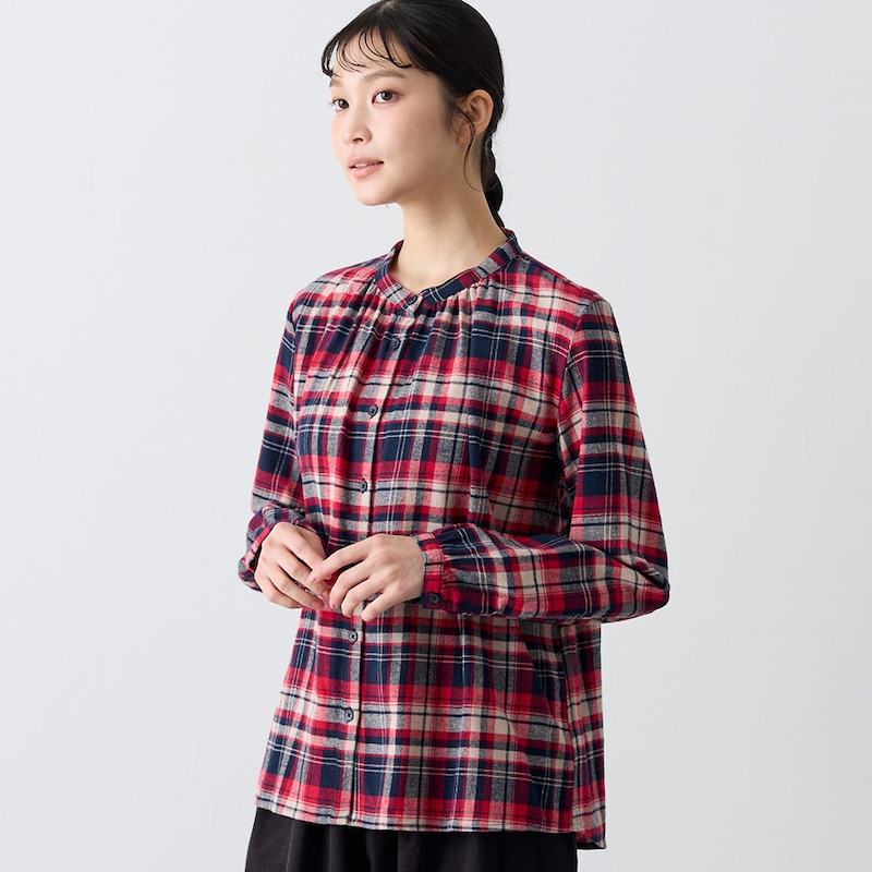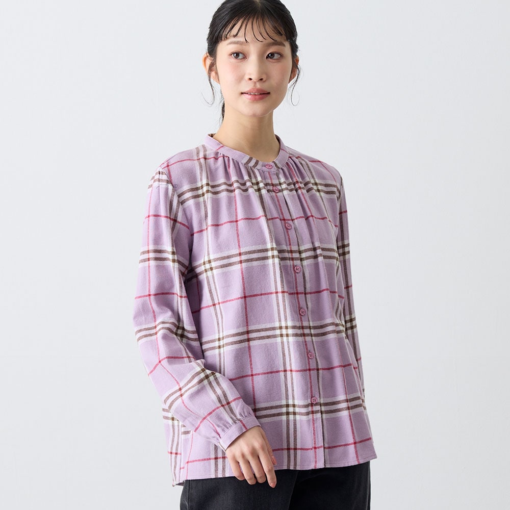 ふんわり感と胸元のギャザーが大人かわいい起毛シャツ