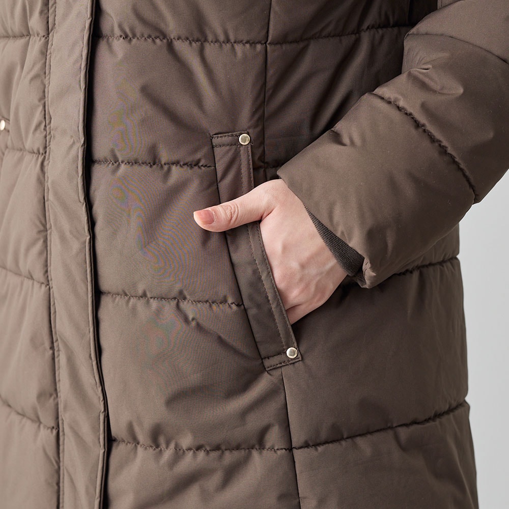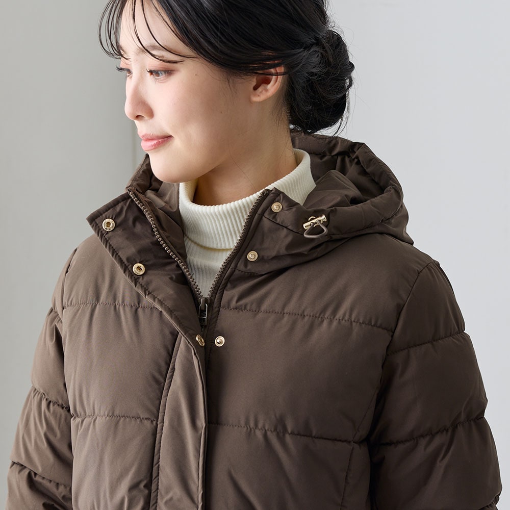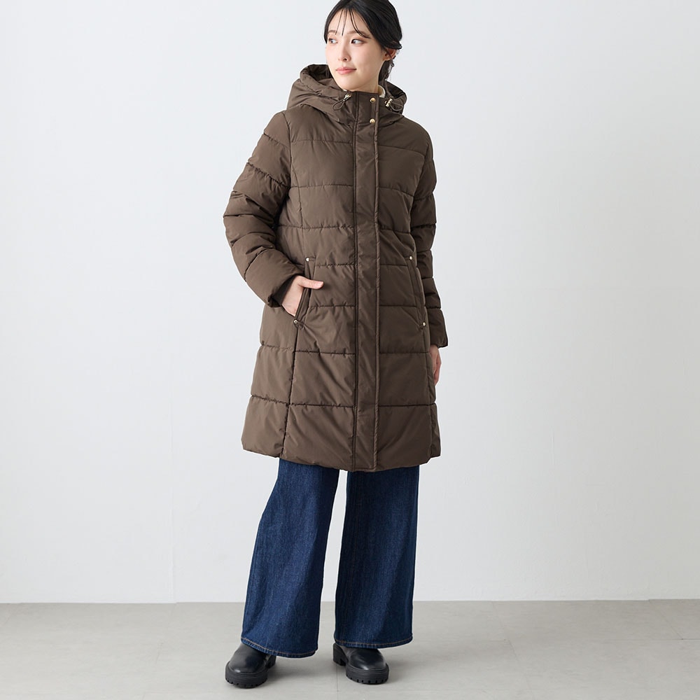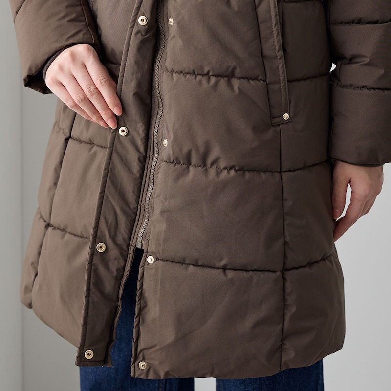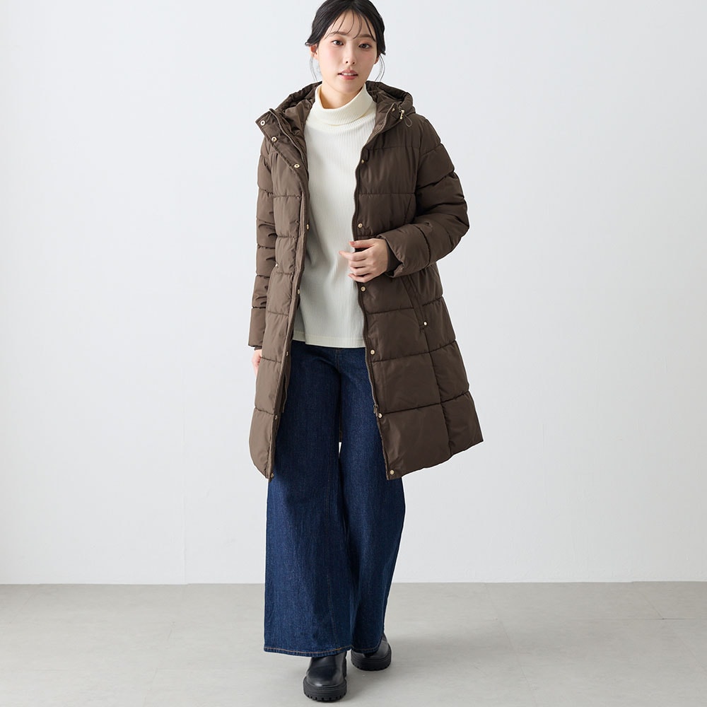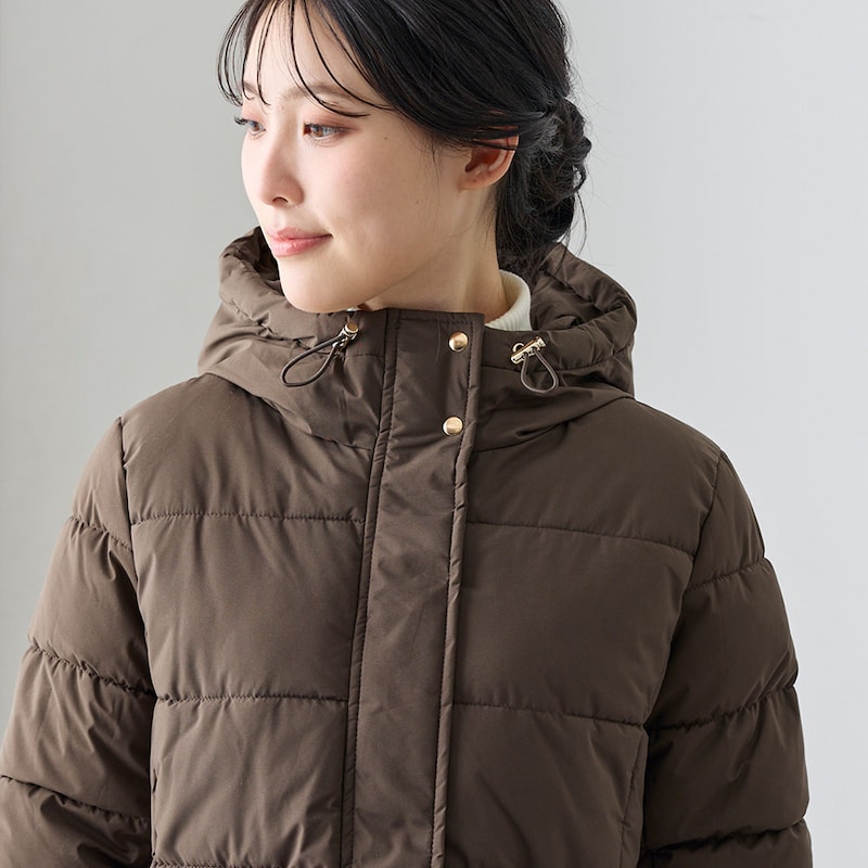 風の侵入を防いでくれる、フード付きロングコート