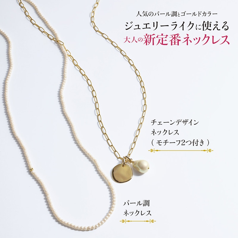 ●パール調ネックレスとチェーンデザインネックレス(モチーフ2つ付き)の2種類をご用意