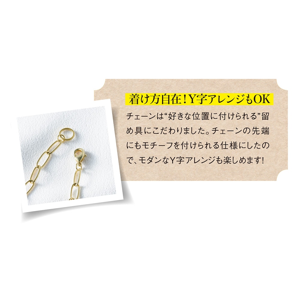 ●チェーンの先端にもモチーフを付けられる仕様で、モダンなY字アレンジも